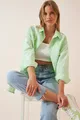 Dames Lichtgroen Oversized Lange Basic Blouse