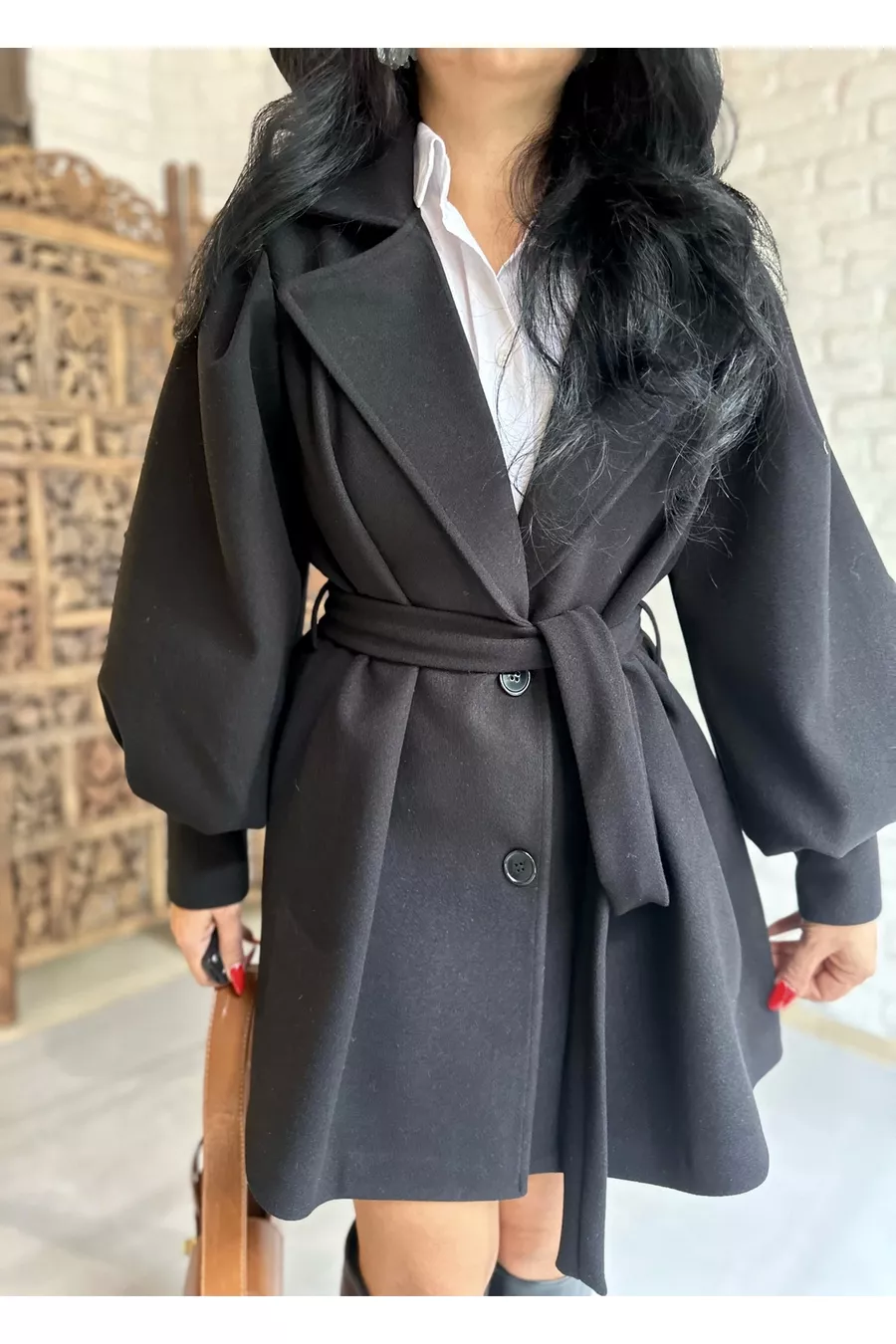 Model: Oversize Stoftype: Geweven Kleur: Zwart Kraagtype: Overslag Patroon: Effen Productdetails: Met ceintuur Producttype: Effen Zak: Dubbele zakken Dikte: Dik Voering: Met voering Lengte: Midden Silhouet: Basic Occasie: Casual/Alledaags Collectie: Casual / Alledaags Mouwlengte: Lang Mouwtype: Ballonmouw Extra kenmerken: Waterdicht Vullingtechniek: Geen vulling Sluitingstype: Knopen Print/Borduurtechniek: Zonder print Vulmateriaal: Geen vulling Ceintuur: Met ceintuur Materiaal: Kasjmier Weefseltype: Kasjmier Wasinstructies: Type 2 Seizoen: Winter Herkomst: AE Verpakkingsstatus: Zonder doos