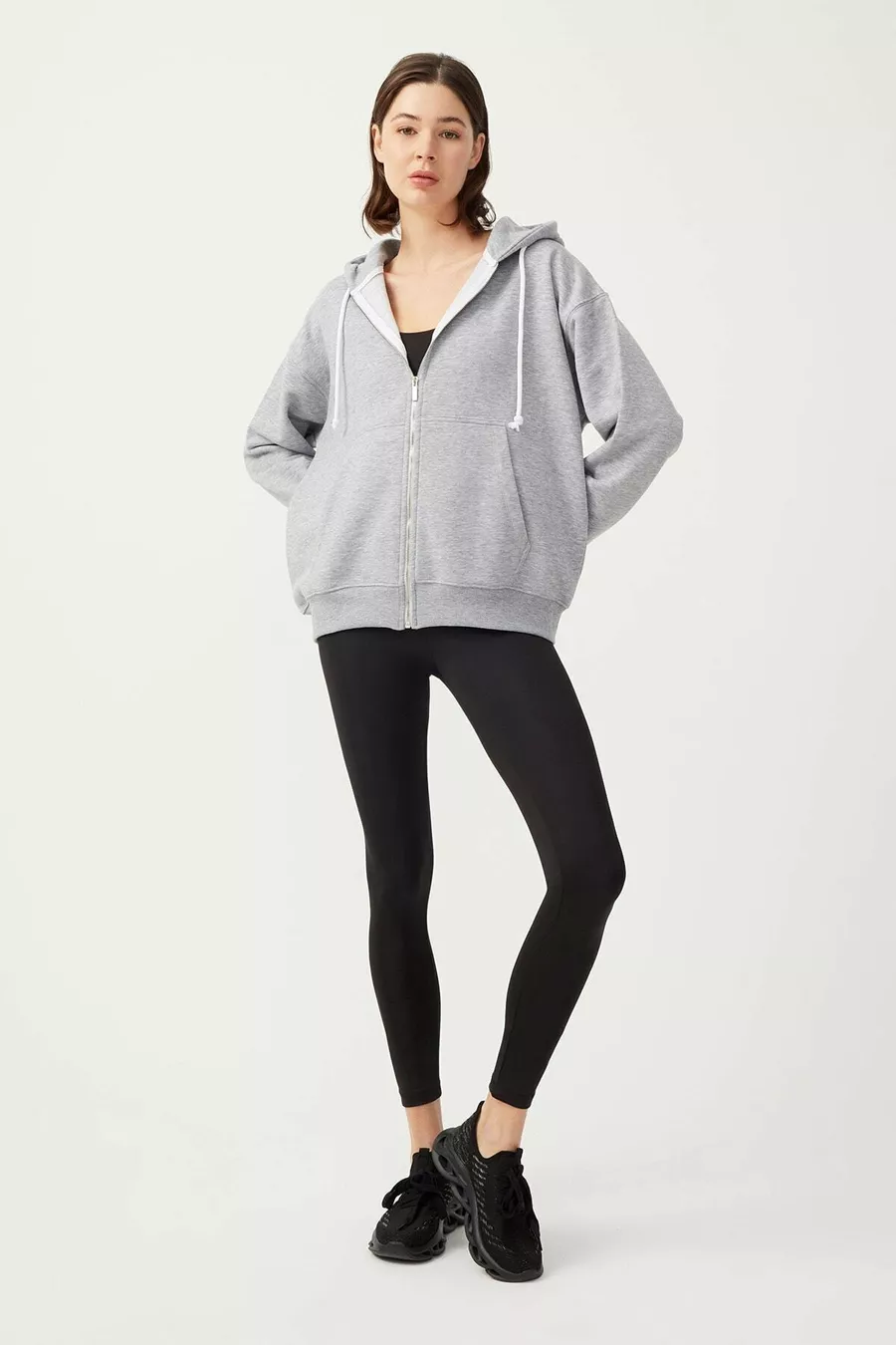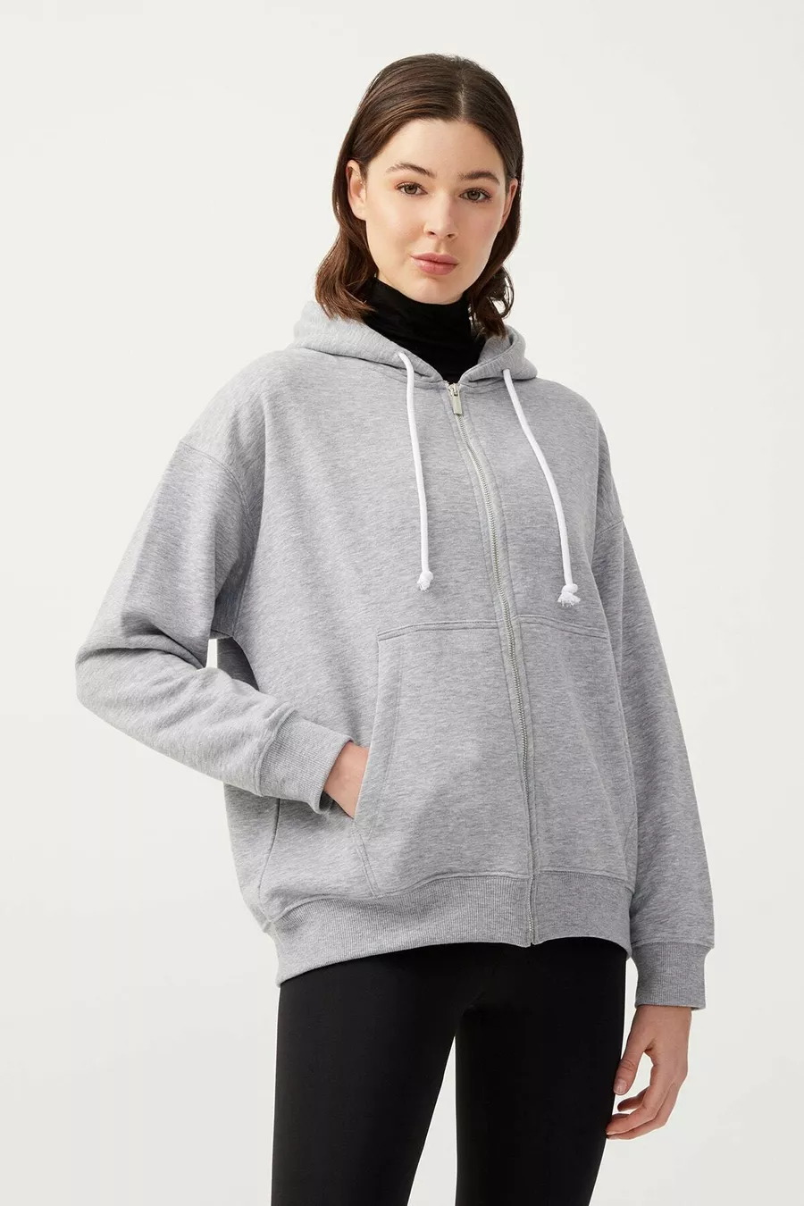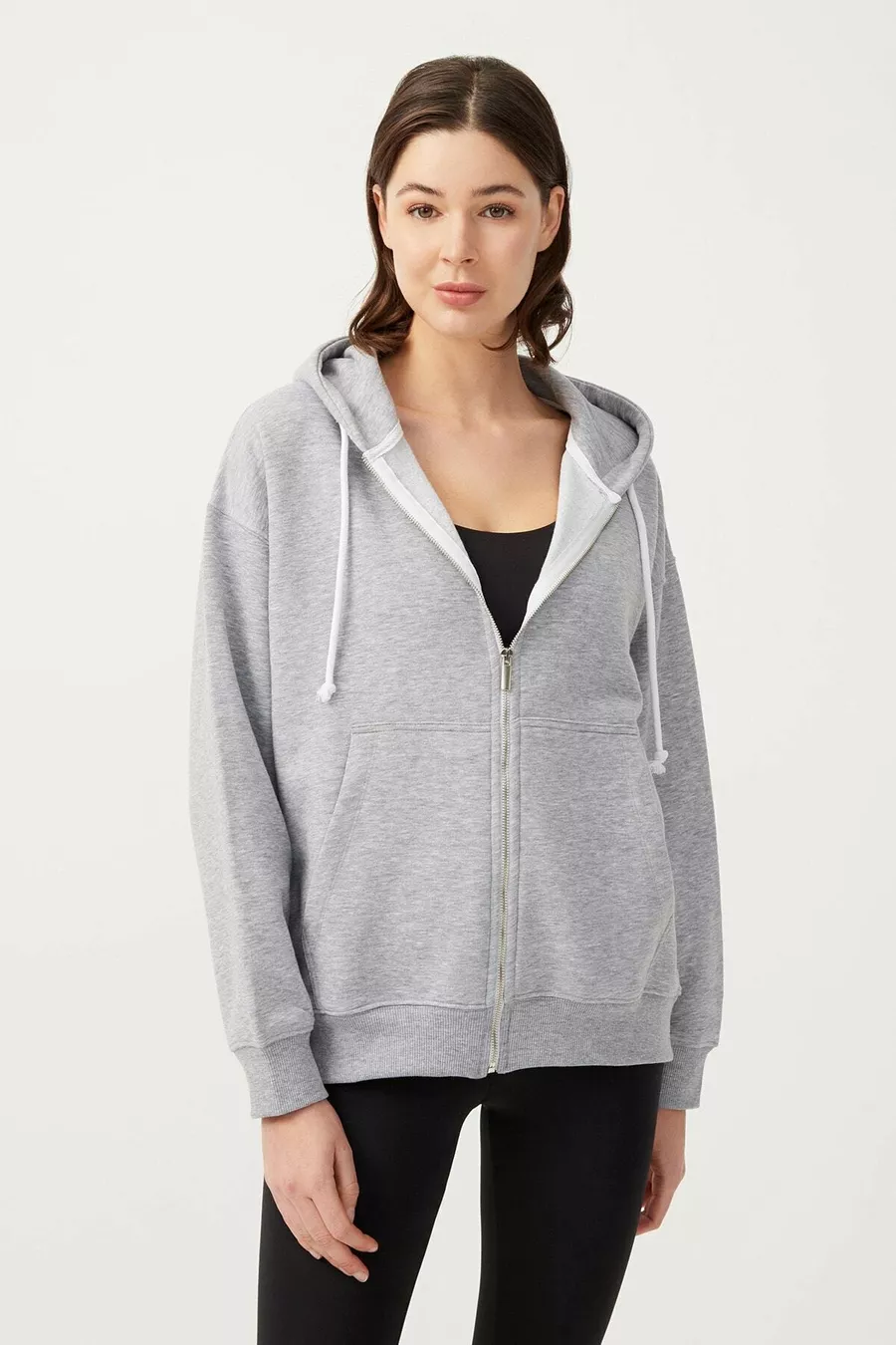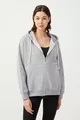 Dames Melange Grijs Hoodie Oversized Gebreide Sweatshirt met Rits en Fleecevoering