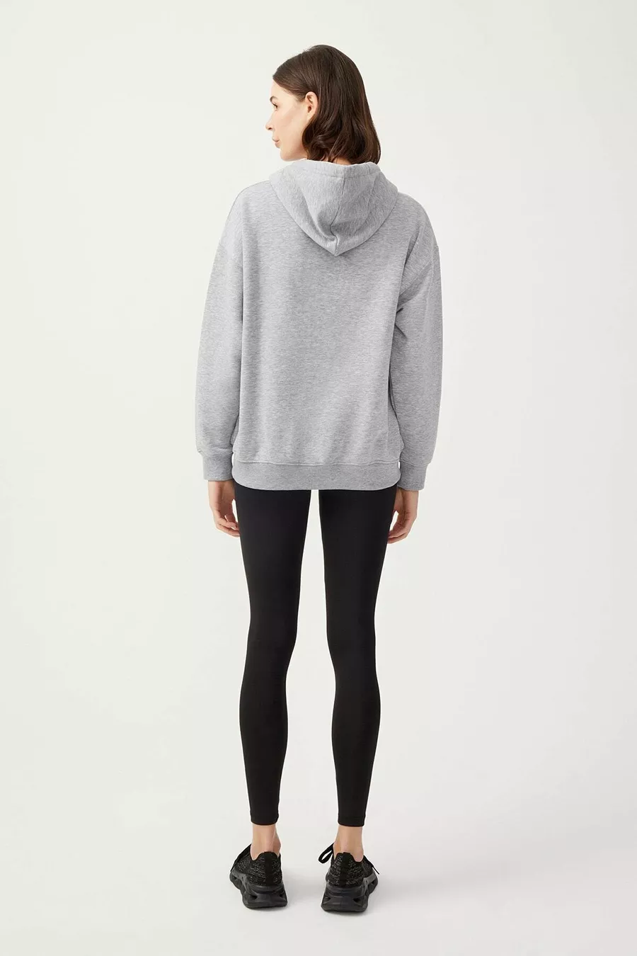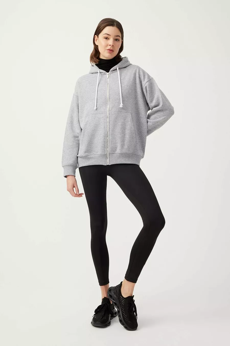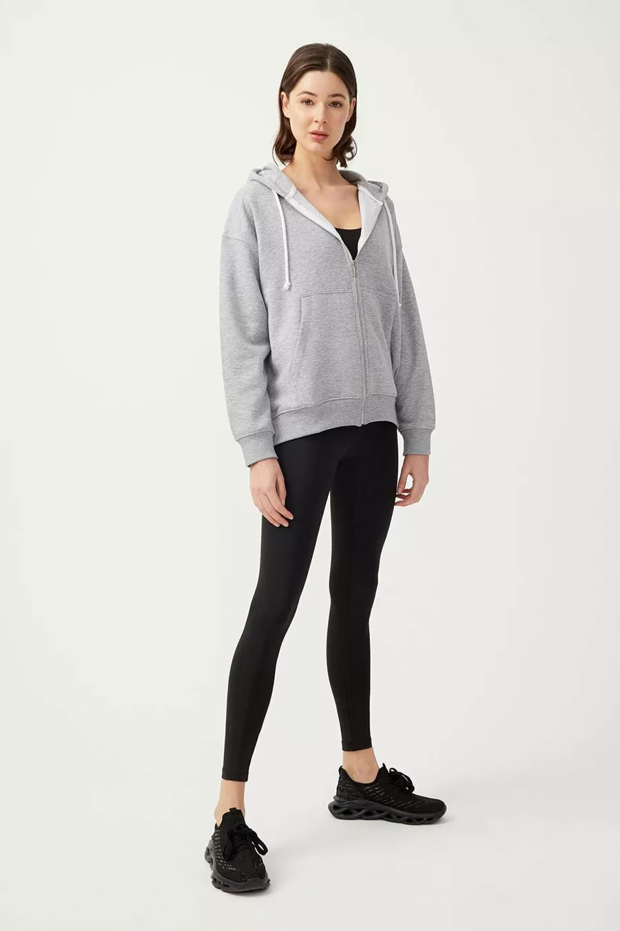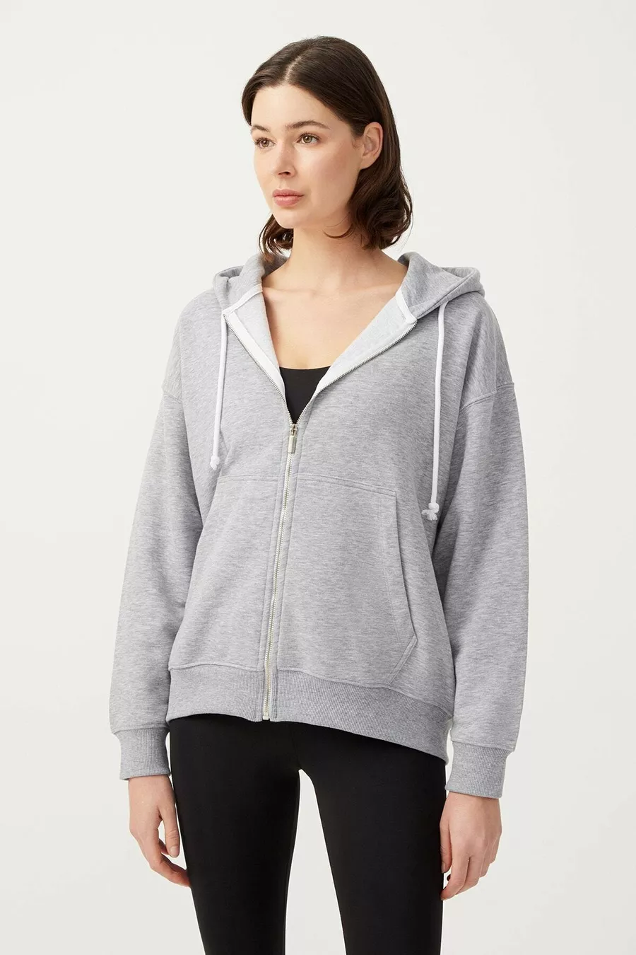 Dames Melange Grijs Hoodie Oversized Gebreide Sweatshirt met Rits en Fleecevoering