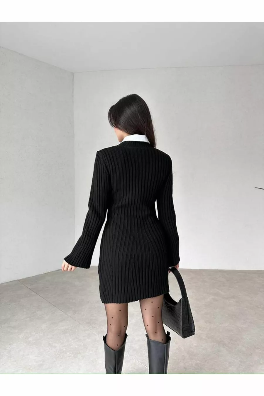 Dames Mini Geribbelde Wintertrui Jurk