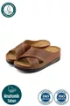 Dames orthopedische huisslippers met zacht voetbed, ademend, dubbele band, geperforeerd, comfortabel voor thuis