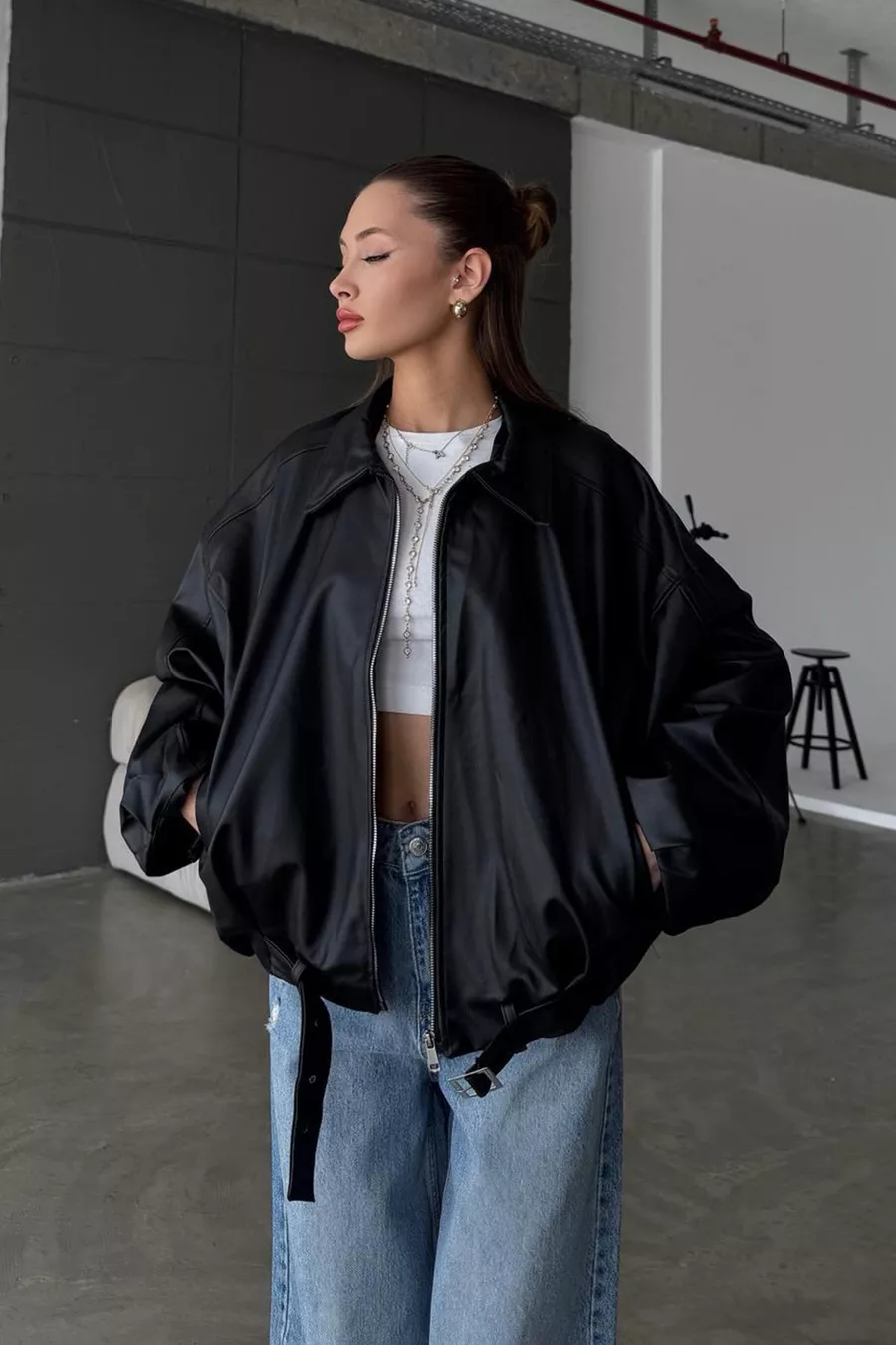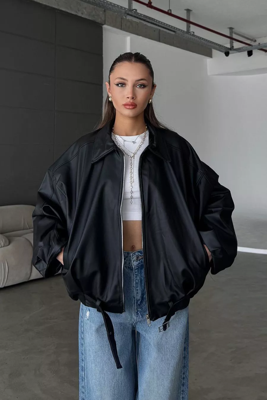 Mouwtype: Ballonmouw Patroon: Effen Pasvorm: Oversized Kraagtype: Opstaande kraag Materiaal: Kunstleer Stofsoort: Kunstleer Kleur: Zwart Sluitingstype: Rits Productdetails: Kunstleer Zak: Dubbele zak Mouwlengte: Lang Collectie: Casual / Dagelijks Dikte: Medium Voering: Gevoerd Lengte: Standaard Silhouette: Relaxed Situatie: Casual / Dagelijks Extra eigenschap: Waterafstotend Weefseltype: Kunstleer Duurzaamheidsdetail: Nee Persoonlijkheid: Cool & Comfort Riemstatus: Zonder riem Producttype: Effen Materiaalcomponent: Kunstleer Wasinstructie: Lage temperatuur Seizoen: Lente / Herfst Herkomst: TR Doosstatus: Geen doos