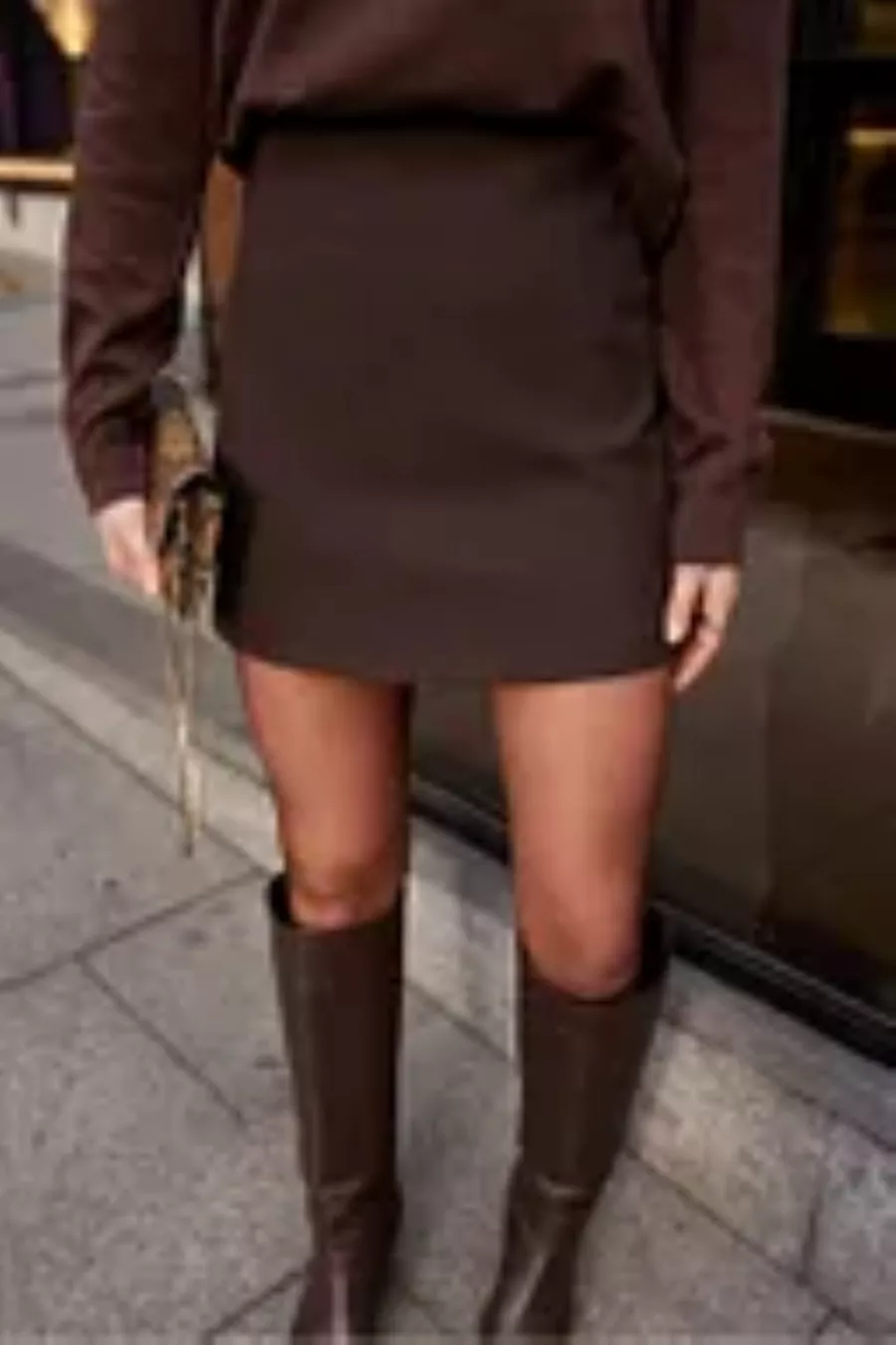 Dames - Elastisch - Corrigerend - Donkerbruin - Met rits - Klassieke minirok - Lengte cm