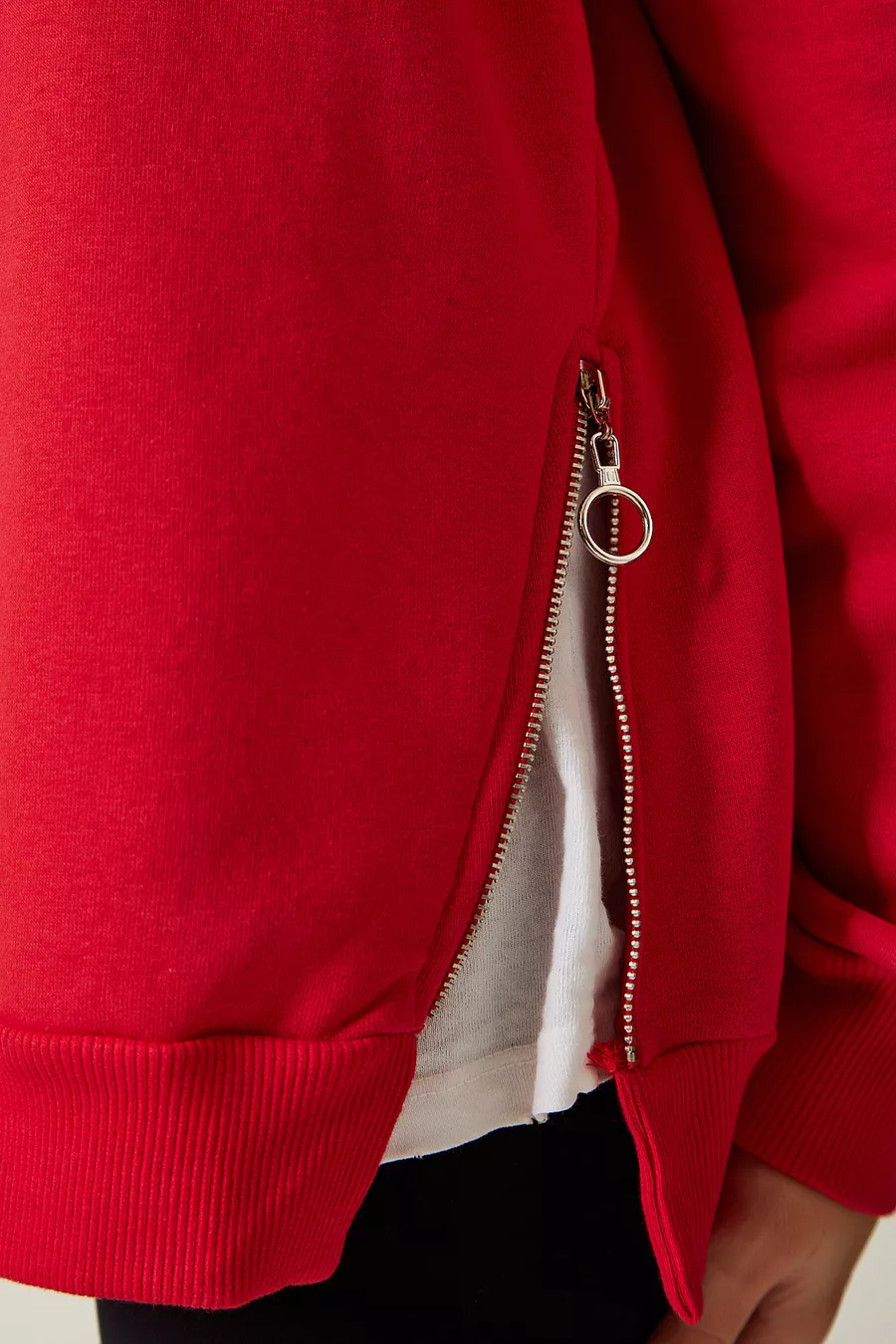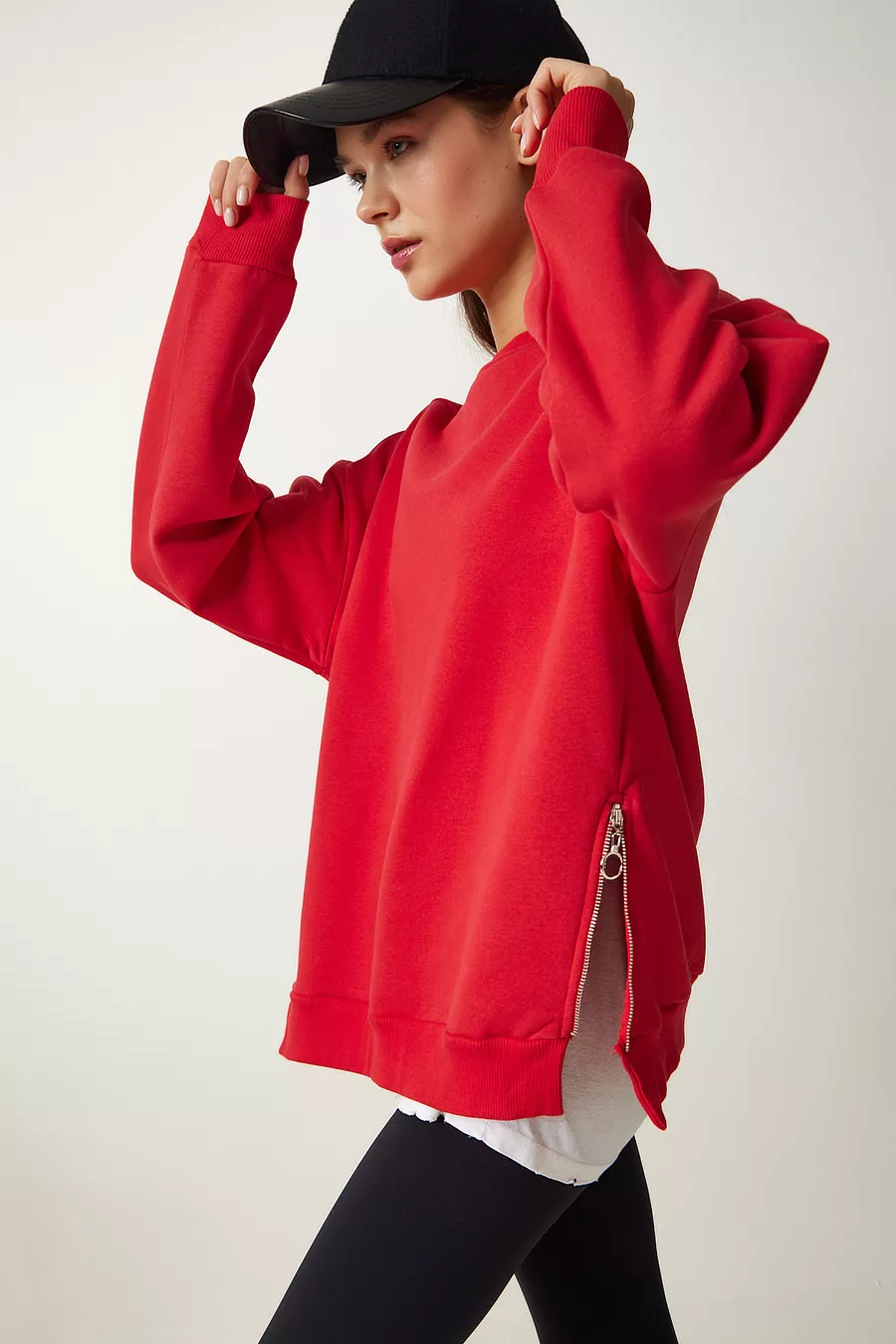 Dames Rode Sweatshirt met Ritsdetails en Fleecevoering