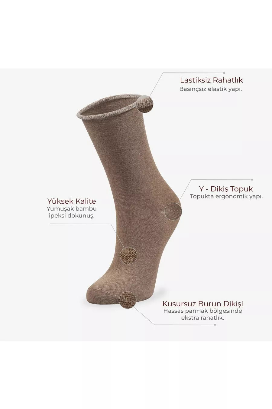 Dames sokken zonder elastiek met opgerolde rand, kleur vison, bamboe