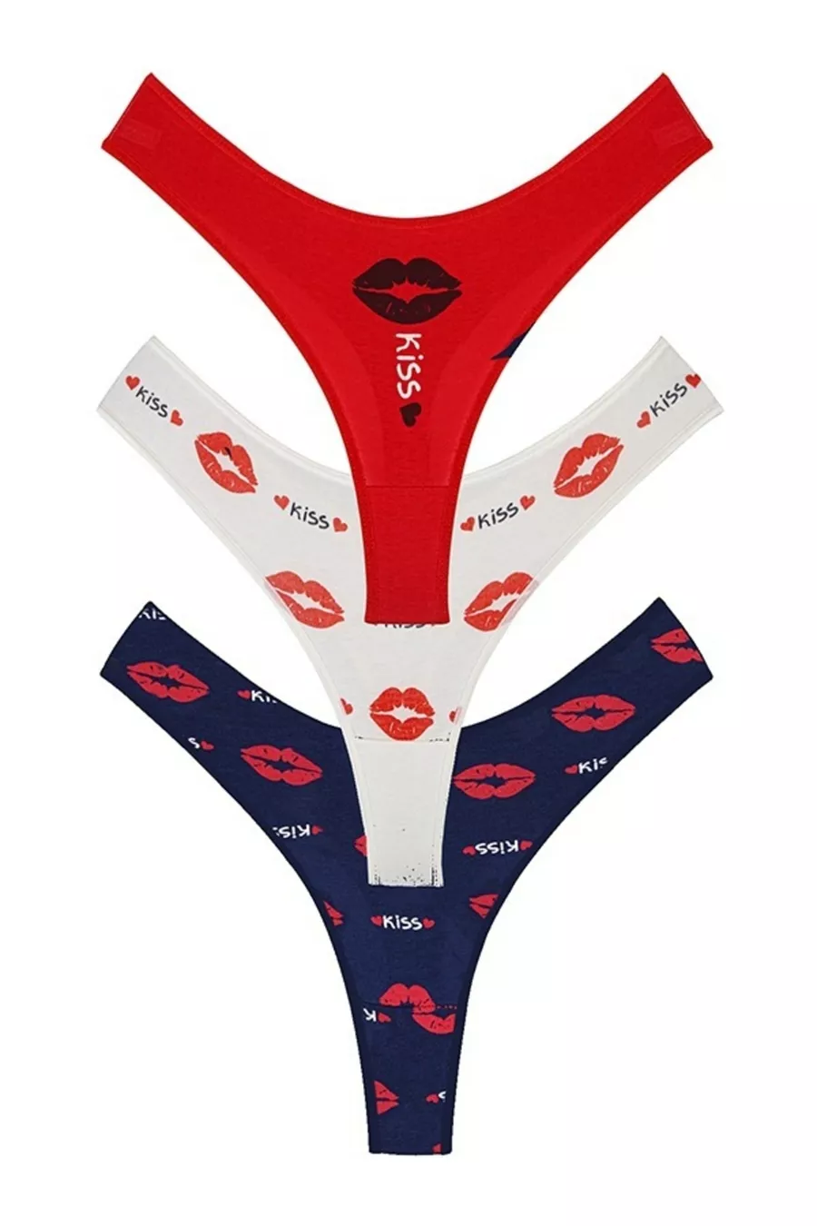 Dames String Slip 3-pack met 'Kiss Me Öp Beni' Opdruk