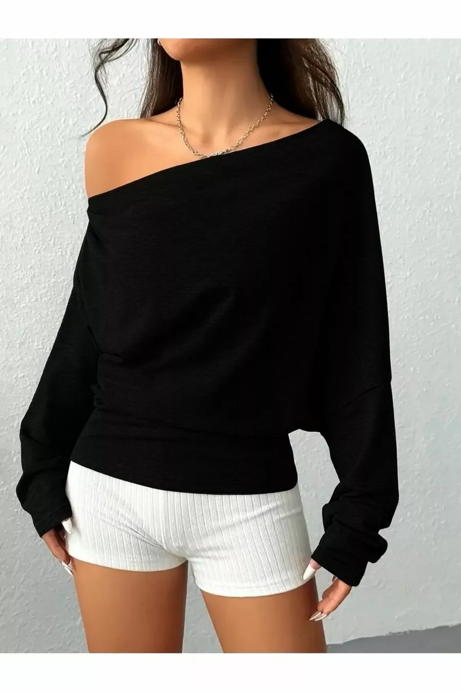 Dames Sweatshirt Nieuwe Seizoen met Schouderplooidetails en V-hals