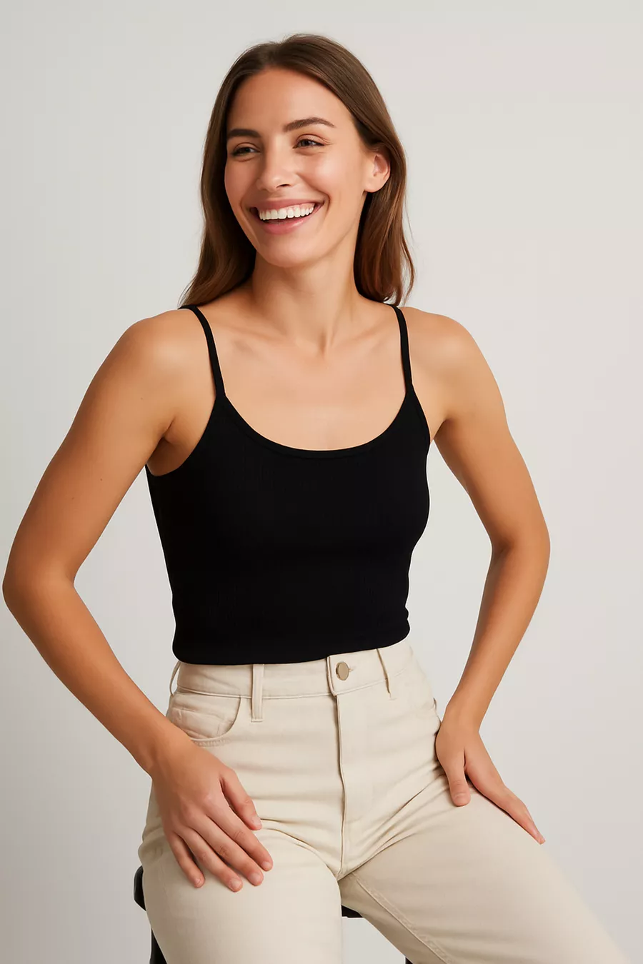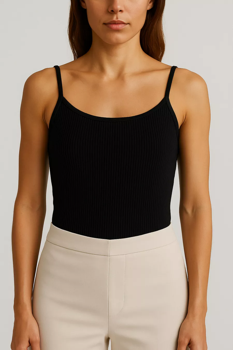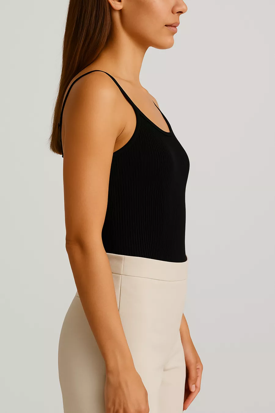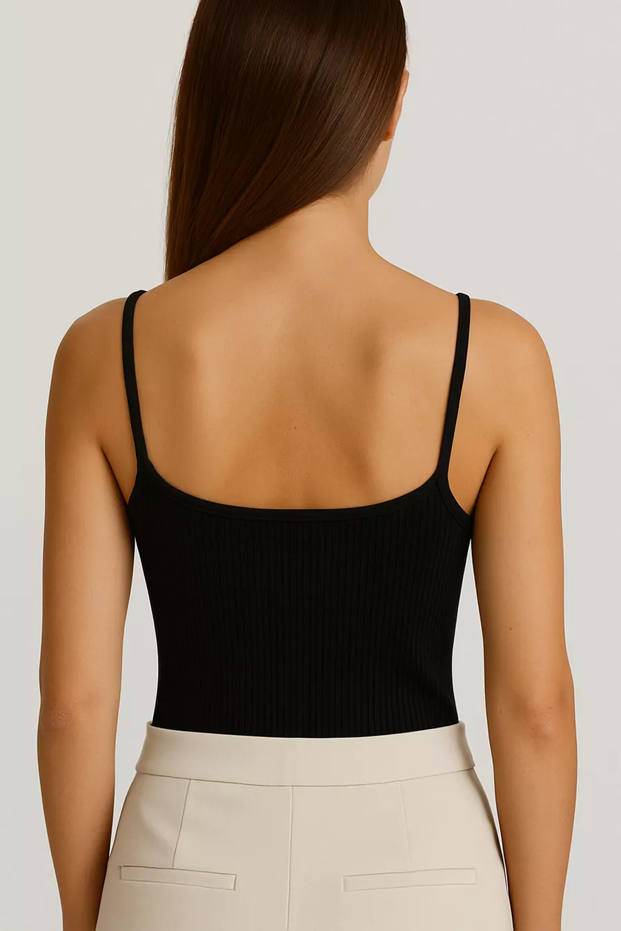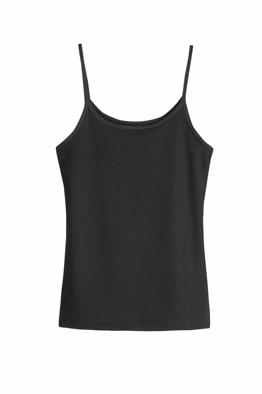 Dames Top van Katoen met Dunne Bandjes en Ribbelstructuur | Zwart