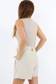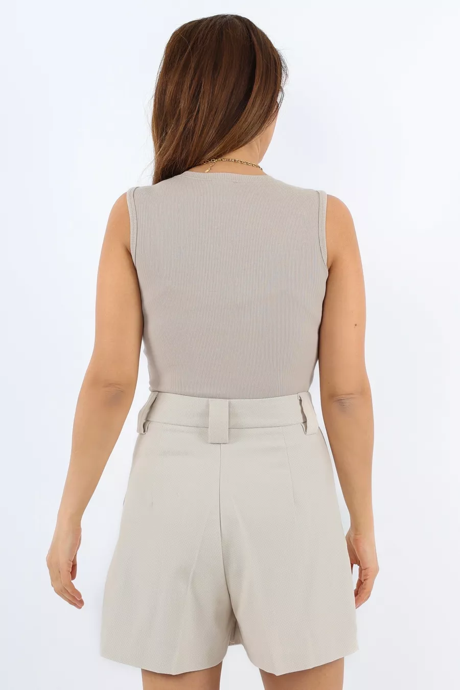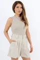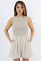 Dames Top met Gesloten Hals, Katoen, Beige, Effen, Ribmouwloze Tanktop