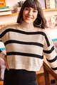 Dames Trui Met Stenen Strepen, Halve Col, Cropped