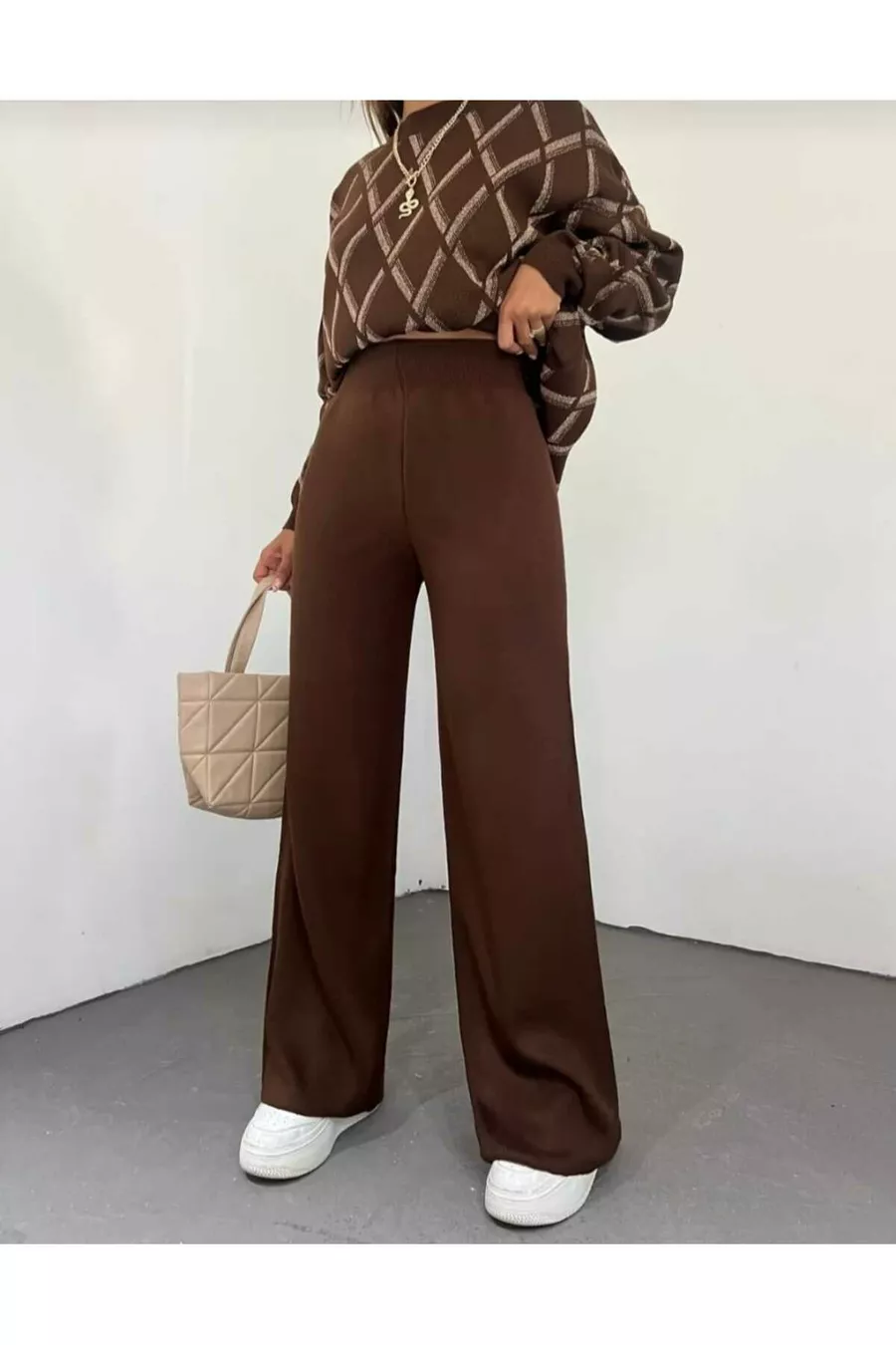 Dames trui broek voor de winter, comfortabele ruime pasvorm, brede pijpen, elastische taille