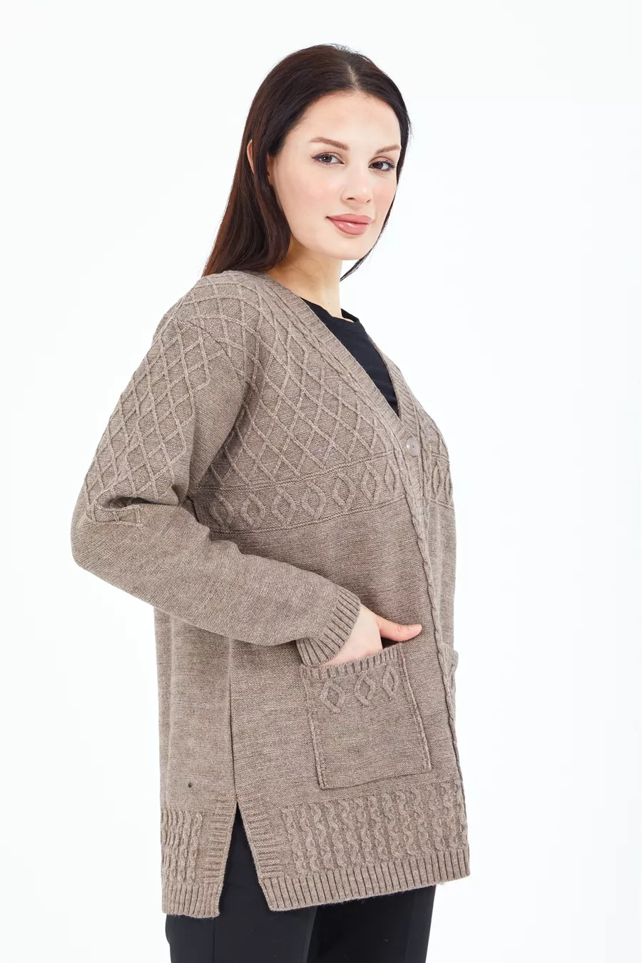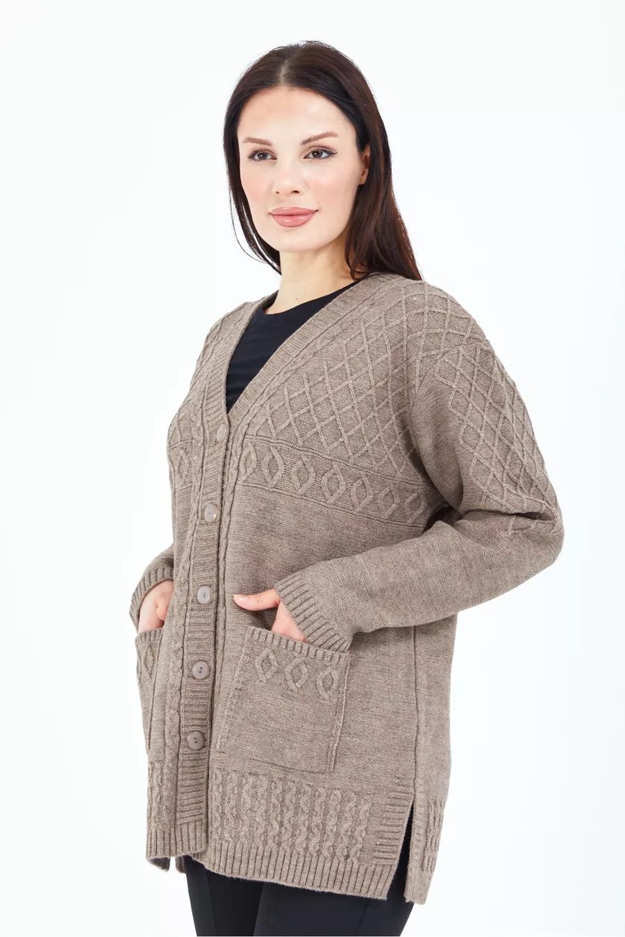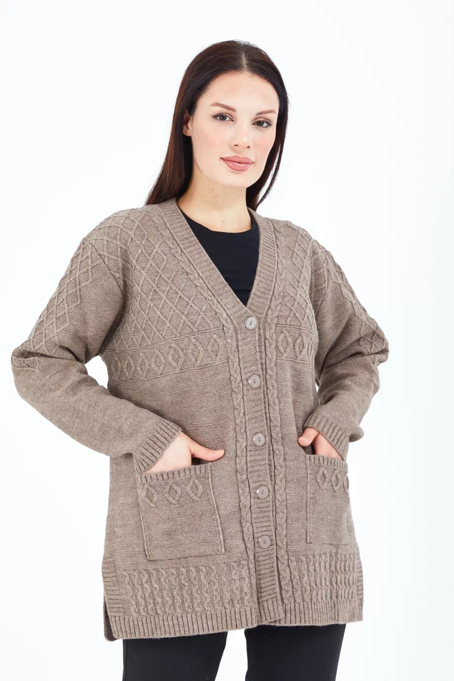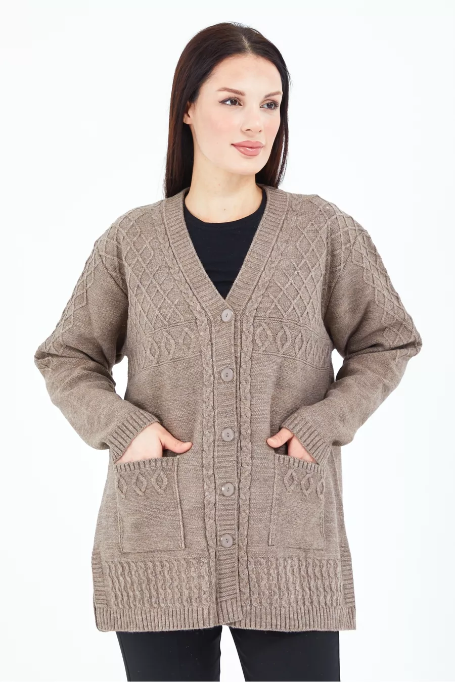 Dames V-hals Vizon Gebreide Wollen Moeder Trui Met Knopen En Zakken, Korte Vest