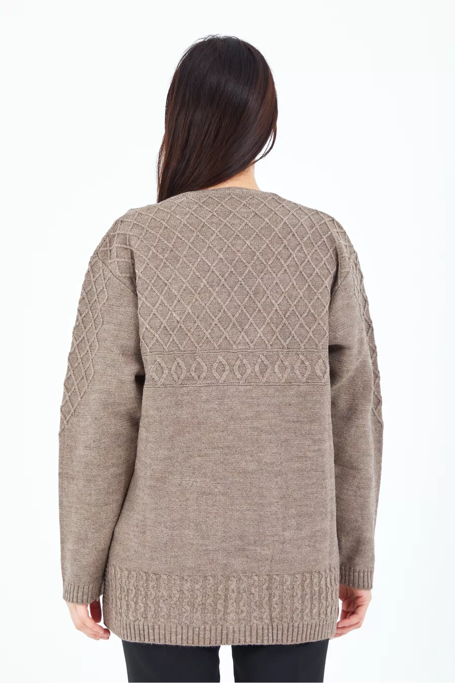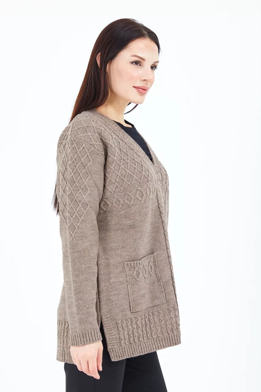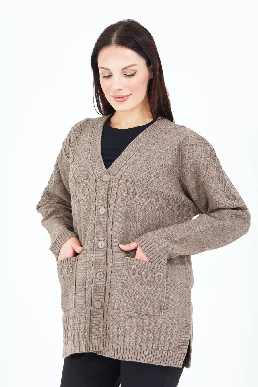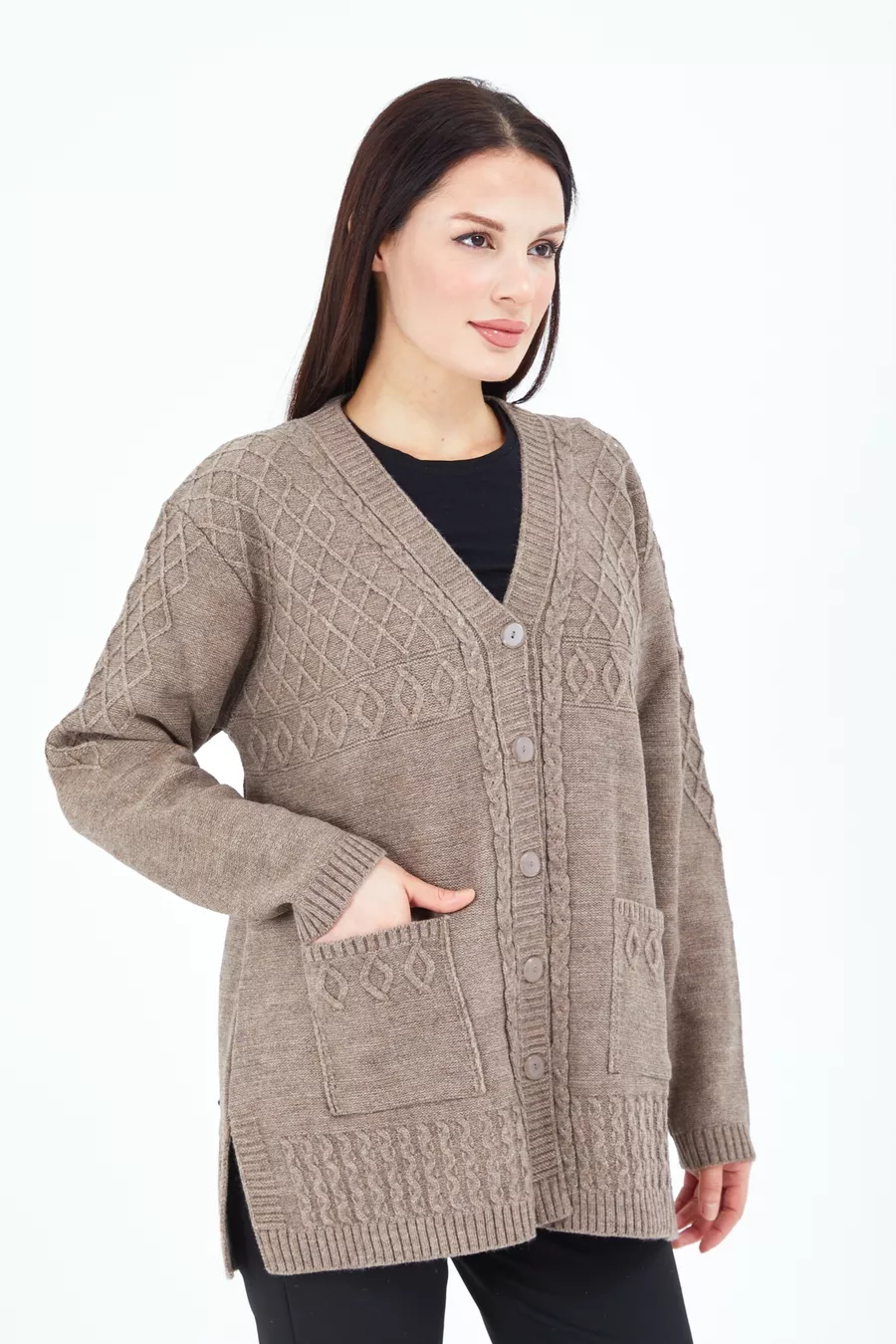 Dames V-hals Vizon Gebreide Wollen Moeder Trui Met Knopen En Zakken, Korte Vest