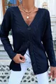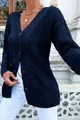 Materiaal: Acryl Mouwtype: Lange mouw Patroon: Effen Pasvorm: Regular Kleur: Donkerblauw Stofsoort: Tricot Kraagtype: V-hals Producttype: Effen Zak: Zonder zak Mouwlengte: Lang Dikte: Middel Lengte: Standaard Occasie: Casual Extra Kenmerk: Geen extra kenmerk Print/Borduurtechniek: Zonder print Sluitingstype: Met knopen Aantal Stukken: 1 Persona: Fashion Forward Duurzaamheidsdetails: Nee Weefseltype: Gebreid Riem/Gordel: Zonder riem Wasinstructies: T02 Seizoen: Winter Herkomst: TR Doosstatus: Geen doos
