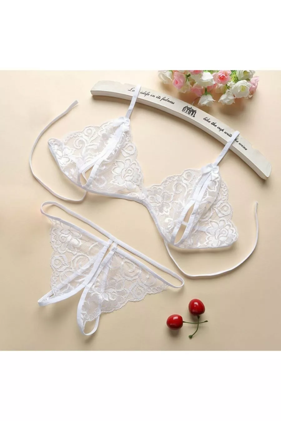 Kleur: Wit Materiaal: Kant Materiaalcomponent: 100% Controleer het binnenetiket voor materiaalinformatie Wasvoorschrift: met de hand wassen Patroon: Geperforeerd Omgeving: Lounge/Thuis Stofsoort: Geweven Verpakkingsinhoud: 2-delig Mouwlengte: Spaghettiband Onder silhouet: String Boven silhouet: Beugel Taille: Normale taille Collectie: Lingerie Duurzaamheidsinformatie: Nee Herkomst: TR