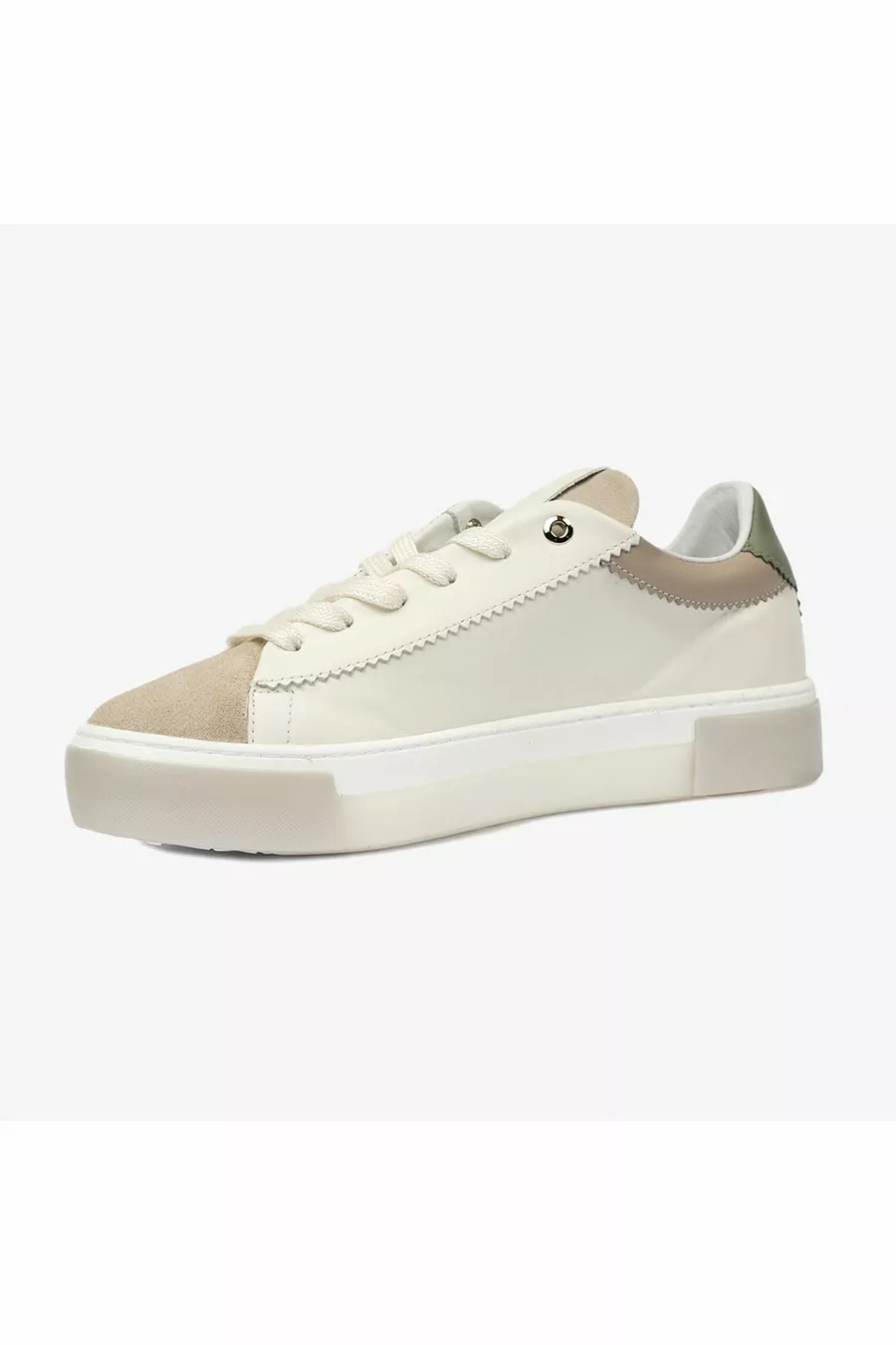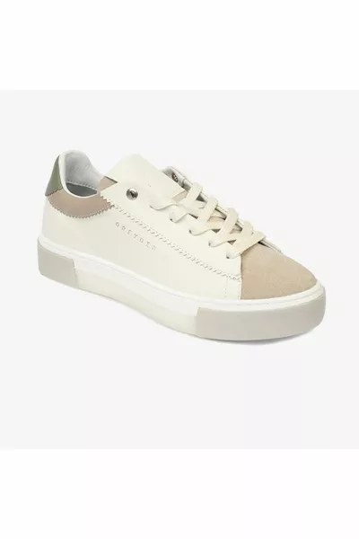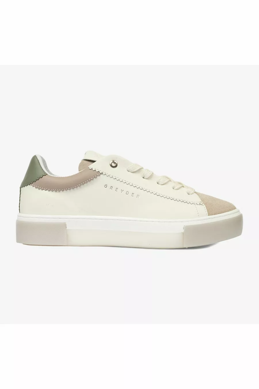Dames Wit Groen Echt Leer Sneaker Schoenen