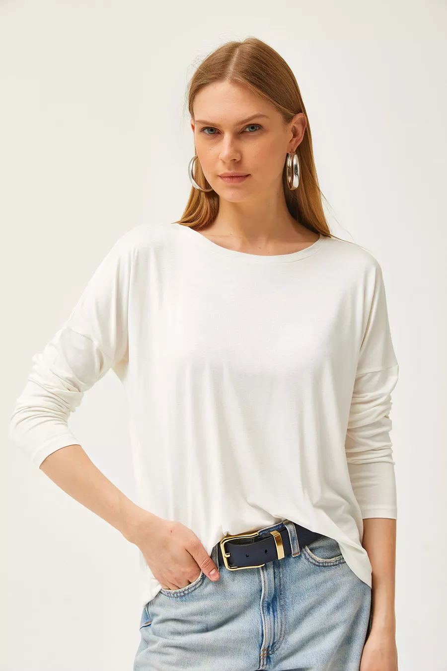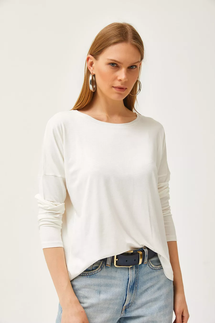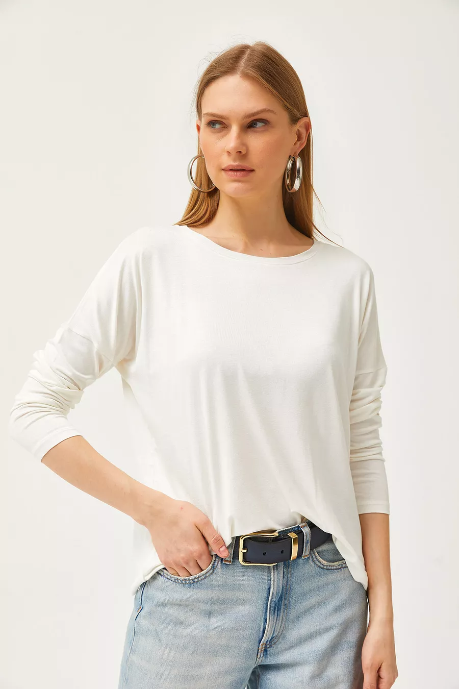 Dames Witte Fiets Hals Vleermuisval Viscose Blouse