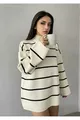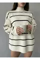 Dames witte oversized gestreepte trui met halve col, gestreepte trui