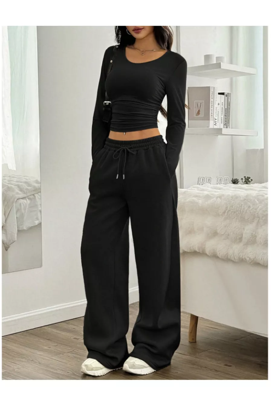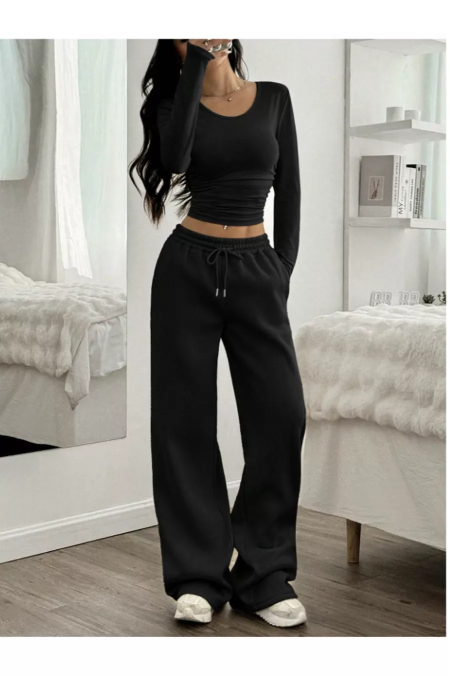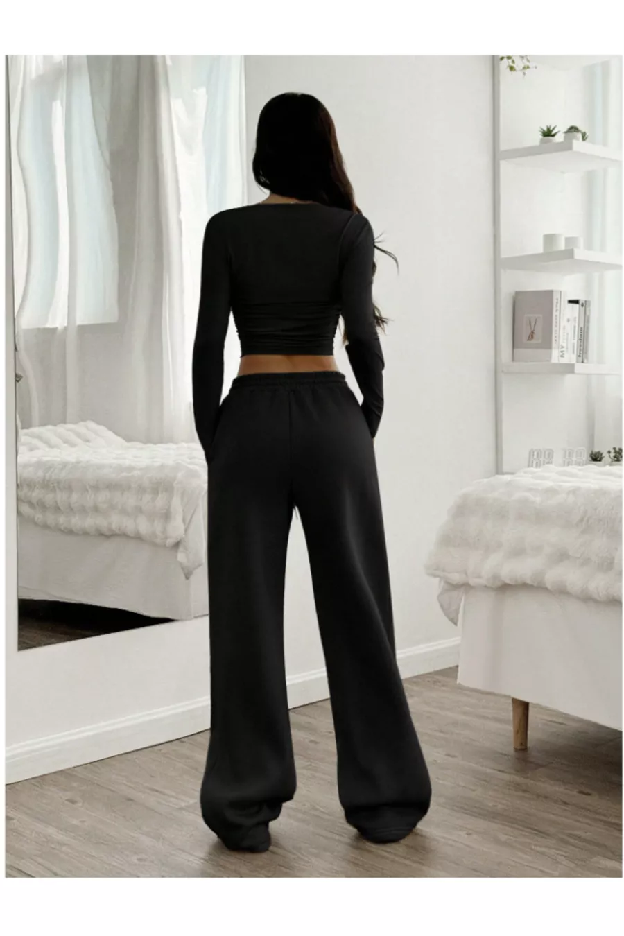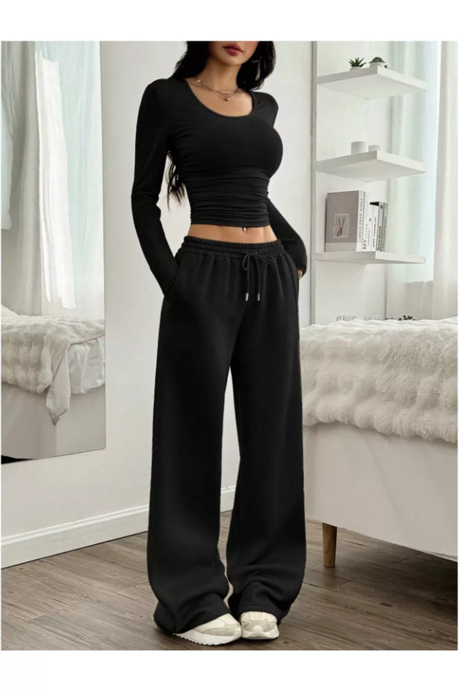 Dames Zwart Grote Maat Baggy Losse Pasvorm Broek Elastische Comfortabele Stoffen Trainingsbroek SHAH MODAhjn