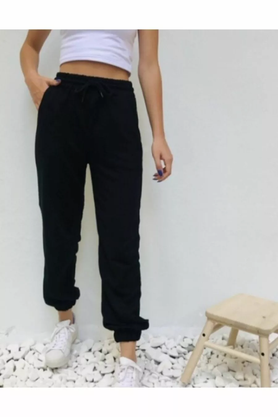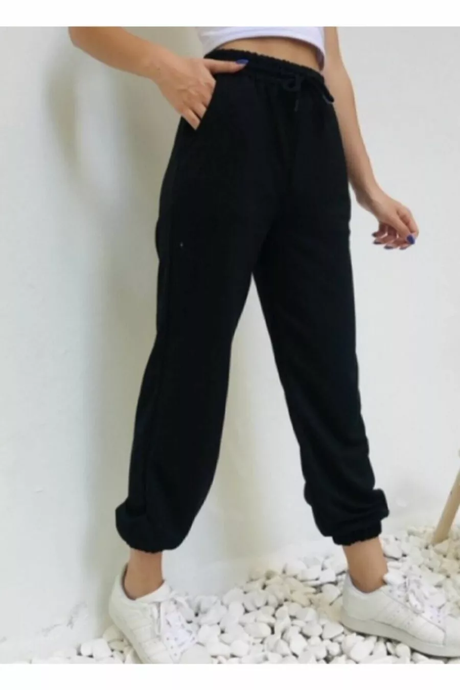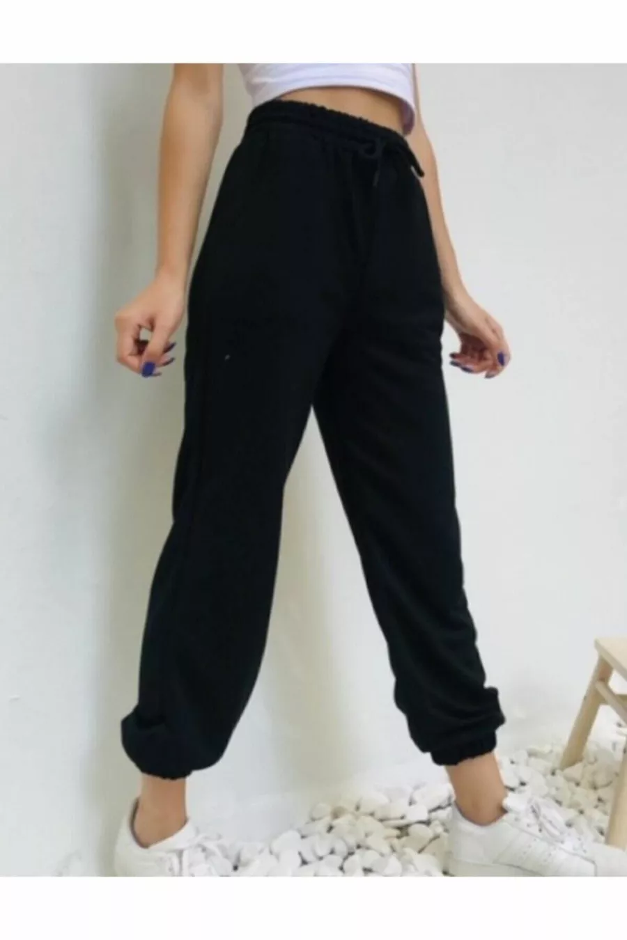 Dames zwarte rechte joggingbroek met elastische taille