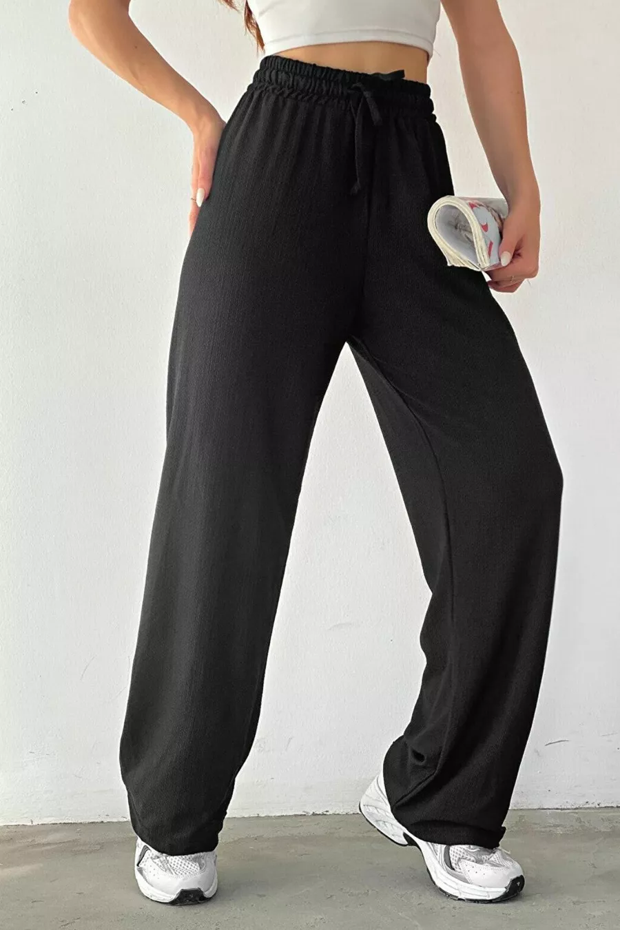 Materiaal: Polyester Stofsoort: Niet gespecificeerd Pijptype: Wijde pijp Taille: Elastisch Patroon: Effen Kleur: Zwart Zak: Dubbele zak Productdetails: Elastisch Collectie: Young Dikte: Dun Voering: Zonder voering Lengte: Regular Silhouet: Regular Omgeving: Young Pasvorm: Los Extra kenmerken: Rekbaar Weefstijl: Crêpe Persoonlijkheid: Young Druk/ Borduurtechniek: Zonder print Riem/Gordel: Met koord Duurzaamheidsdetails: Nee Materiaalbestanddelen: 75% Viscose, 25% Polyester Wachinstructies: type 1 Seizoen: Winter Herkomst: TR Doosstatus: Geen doos Verpakkingsinhoud: Enkel