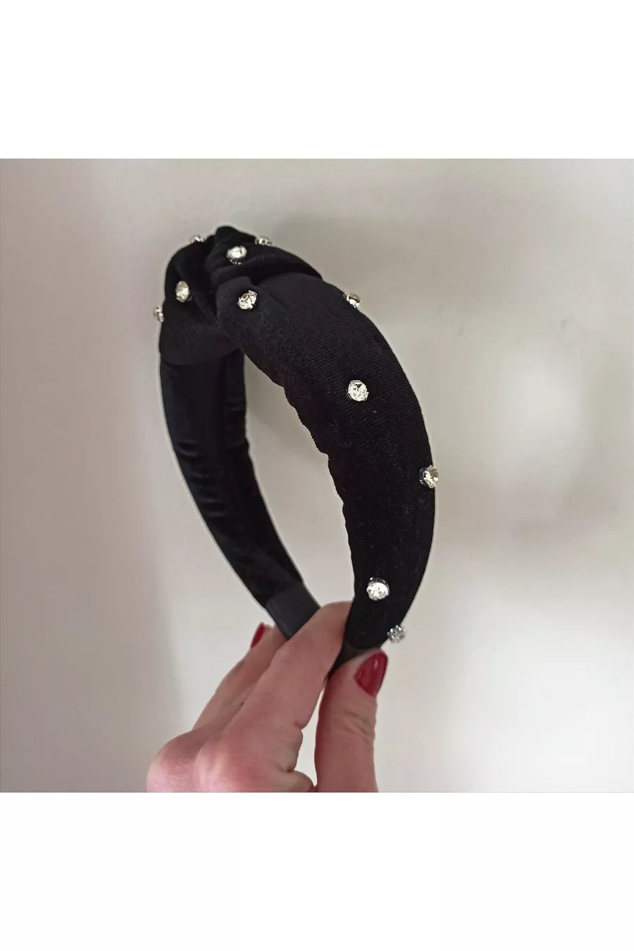 Dames Zwarte Haarband met Knoop en Kristalstenen