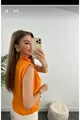 Damesblouse met diepe halslijn, gewatteerde schouders en losvallende pasvorm