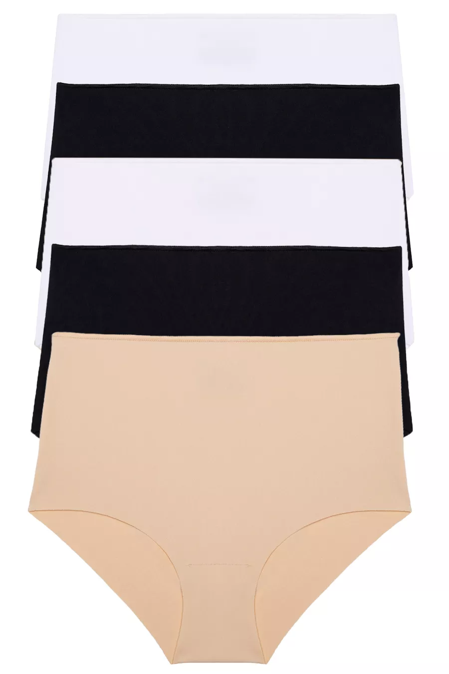 Damesondergoed Extra Hoge Taille Laser Cut Rekbaar Voorkomt Afdrukken 5-Pack Polyester Mixkleur