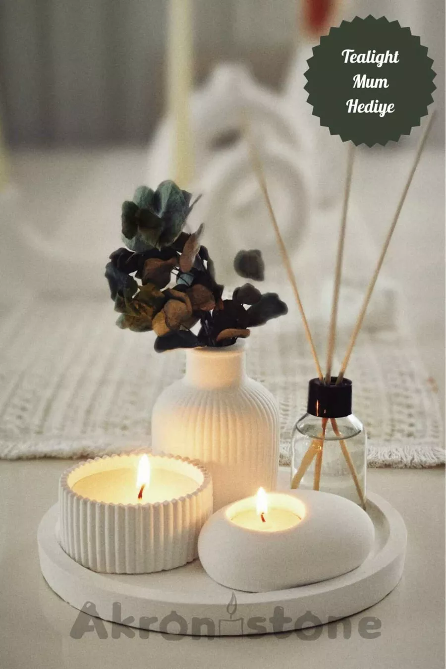 Decoratief dienblad 5-delige geschenkset: vaas, geurkaars, theelichthouder, kamergeur