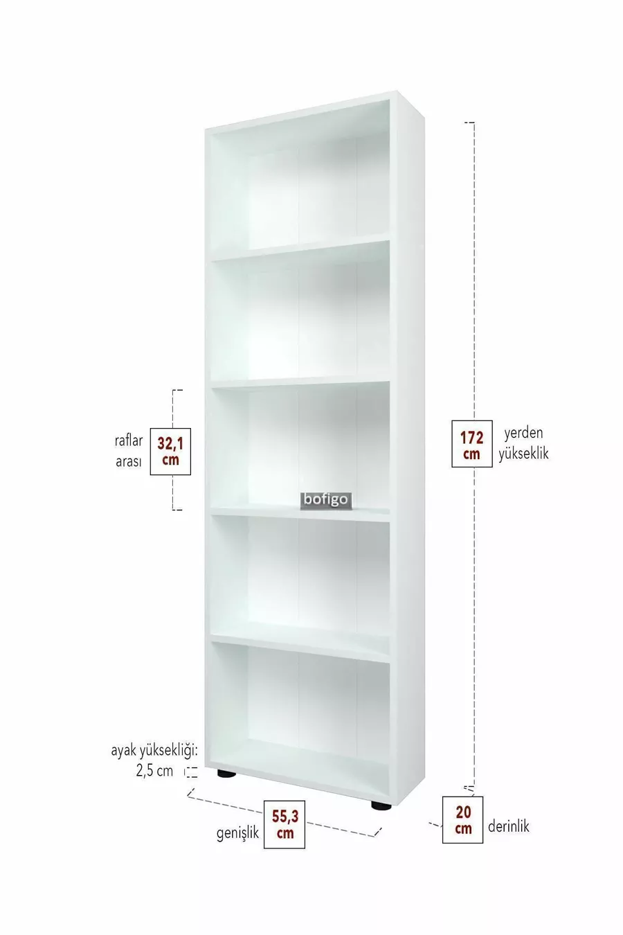 Tip: Klassiek Materiaal: Spaanplaat Kleur: Wit Hoogte: 172 cm Breedte: 55 cm Diepte: 20 cm Aantal planken: 5 Behuizing materiaal: Spaanplaat Stijl: Modern Thema / Stijl: Scandinavisch Kenmerk: Oplaadbaar