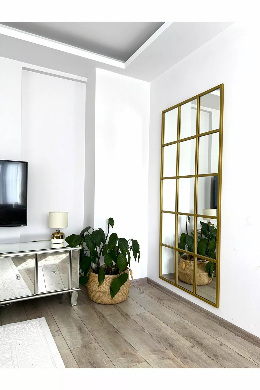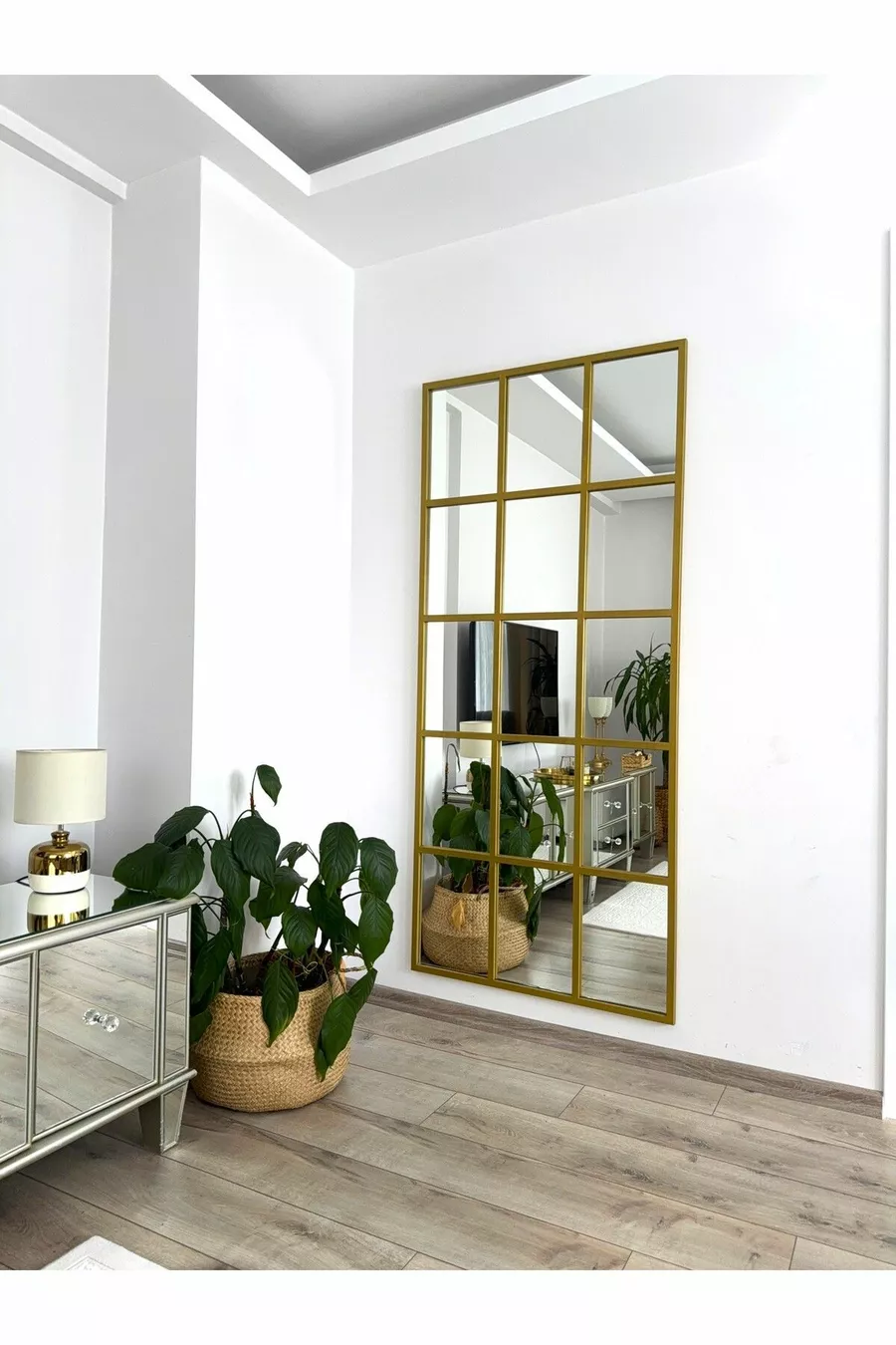 Materiaal: Metaal Kleur: Goud Vorm: Rechthoek Type: Wandspiegel Herkomst: TR