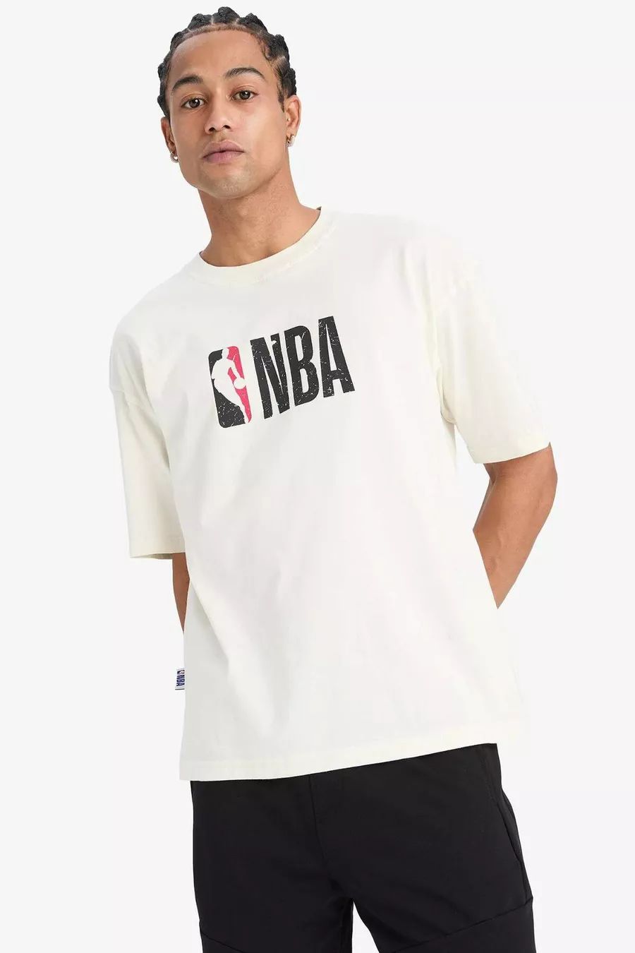 DeFactoFit NBA Woordmerk Oversized Brede Pasvorm Ronde Hals Korte Mouw T-shirt SP