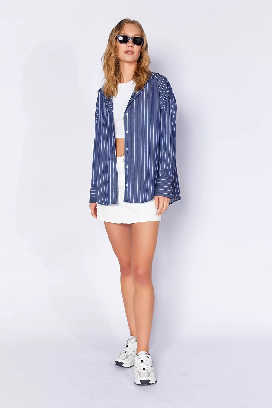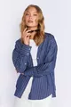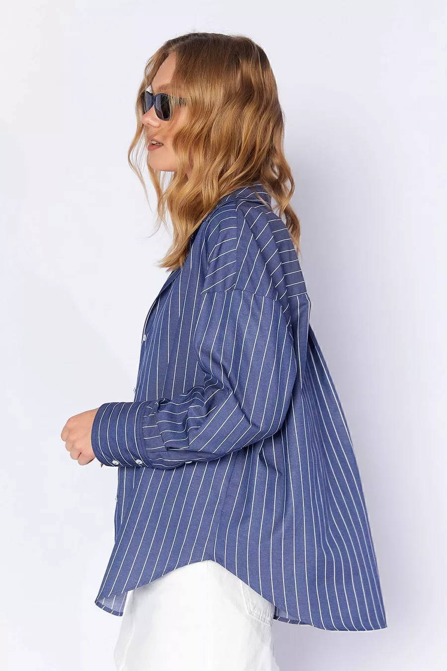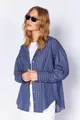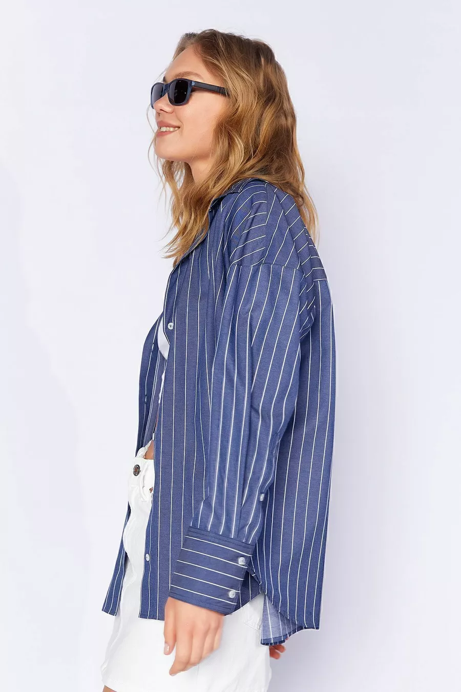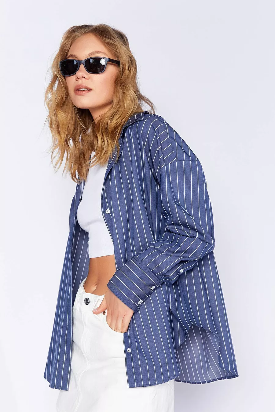 Donkerblauw Dames Gestreept Oversized Shirt |