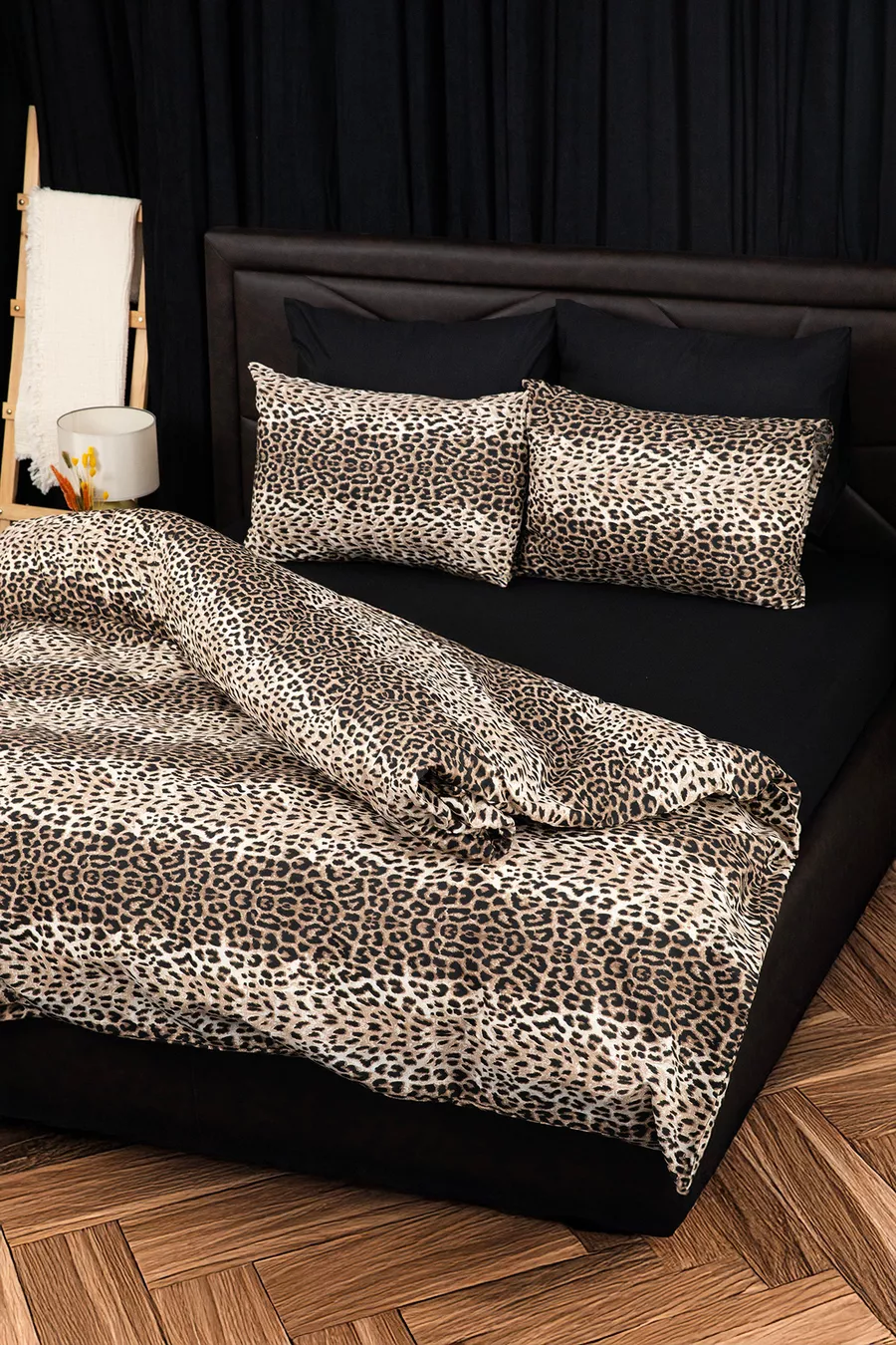 Materiaal: Katoen Polyester Afmeting: 200 x 220 Type hoeslaken: Met elastiek Kleur: Zwart Patroon: Luipaard Kenmerk: Dubbelzijdig Wasvoorschrift: T01 Verpakkingstoestand: In doos Herkomst: TR