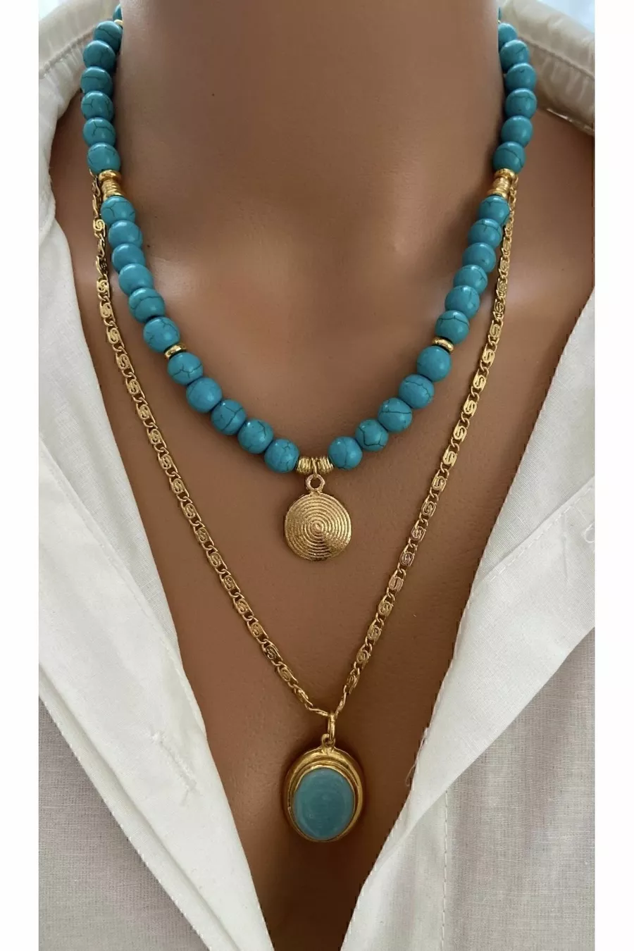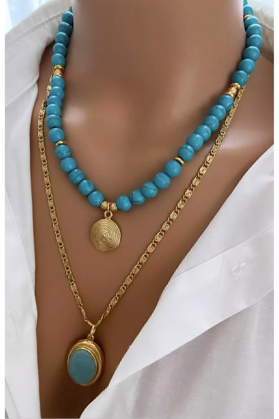 Materiaalcomponenten: GEREAL NATURELLE STEEN en GEPARELERD MET GOUDGEPLAATSTE MESH-KETTING. METALEN ZIJN GOUDGEPLAATST en HANDGEMAAKT