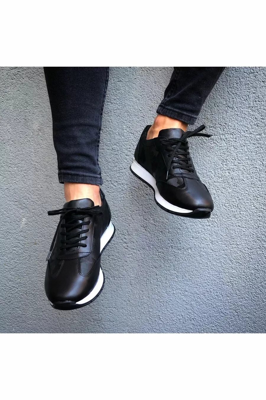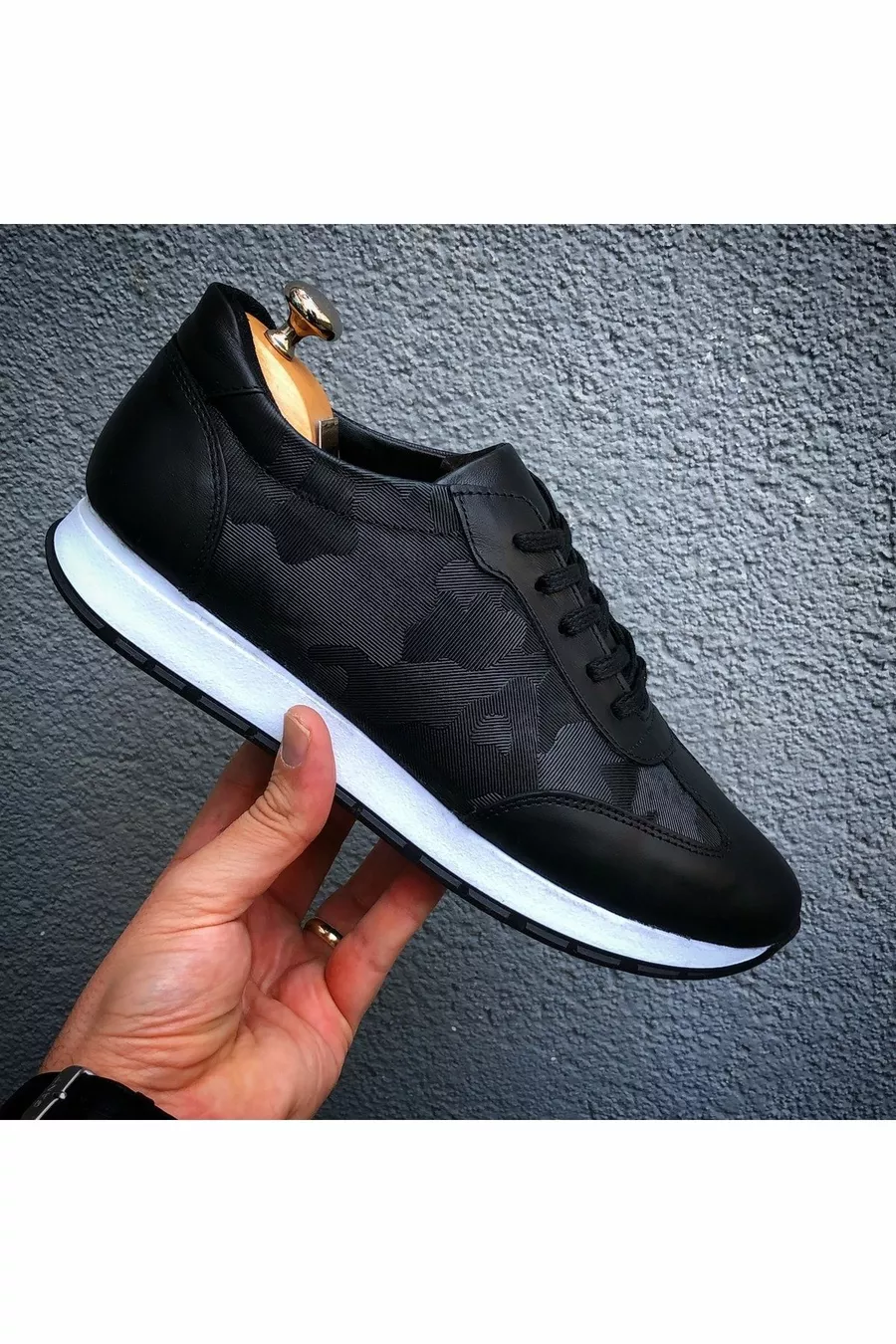 Echt Leer Zwart Camouflage Patroon Zwart Casual Herenschoenen