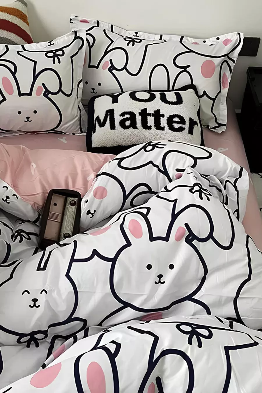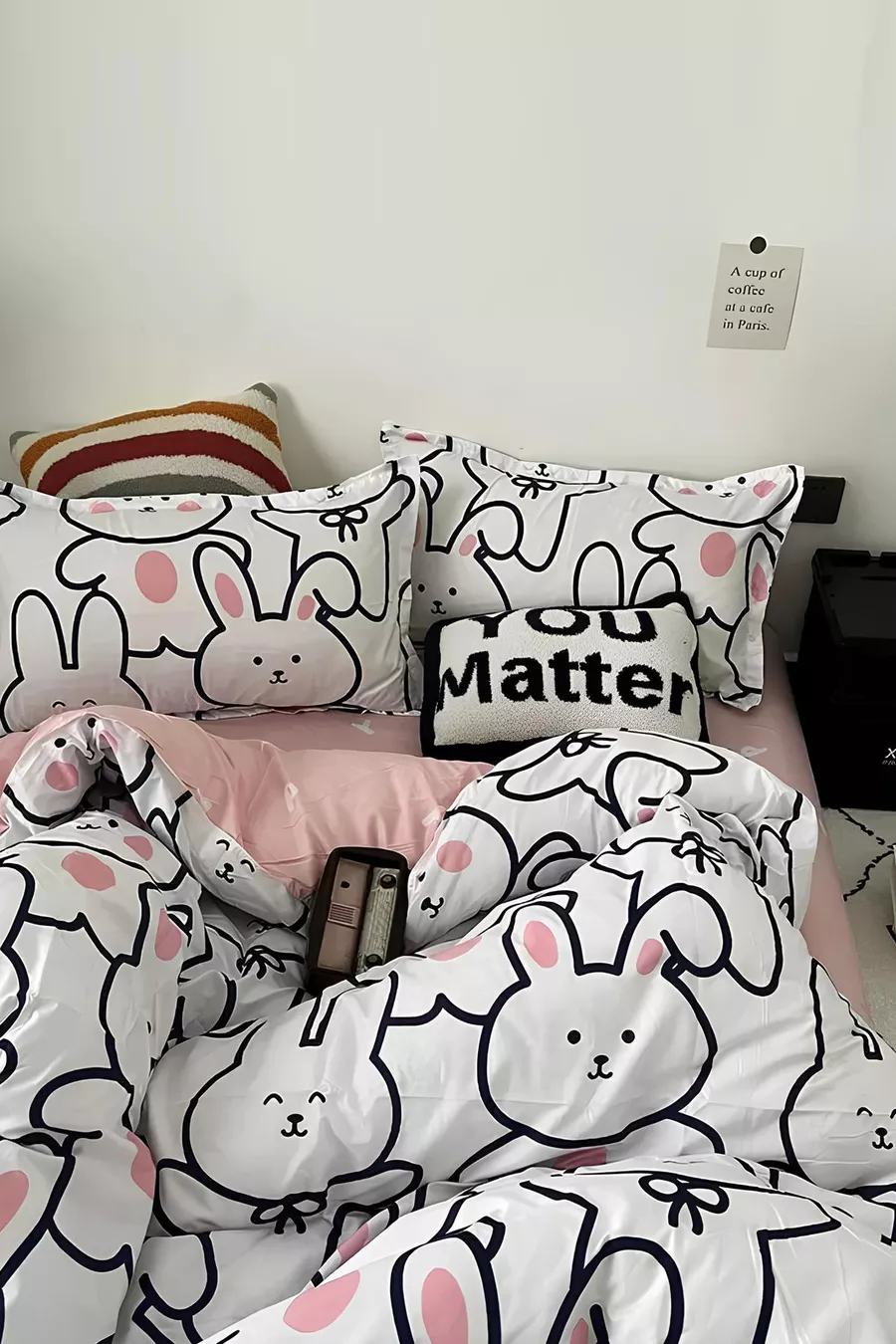 Eenpersoonsbeddengoedset met hoeslaken, schattig konijntje