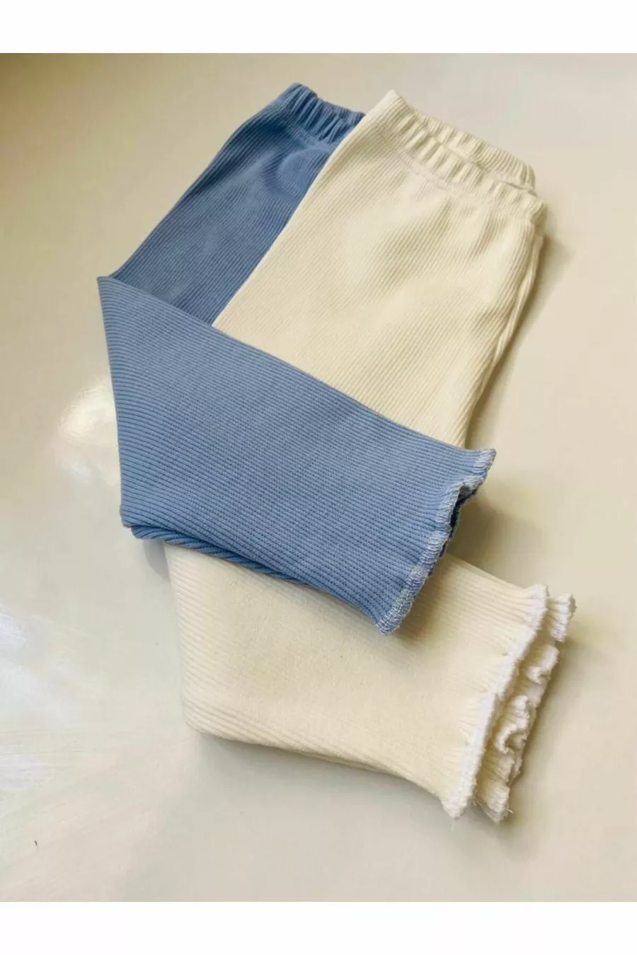 Elastische Geribbelde Blauwe - Witte 2-delige Kinderlegging voor Meisjes en Jongens