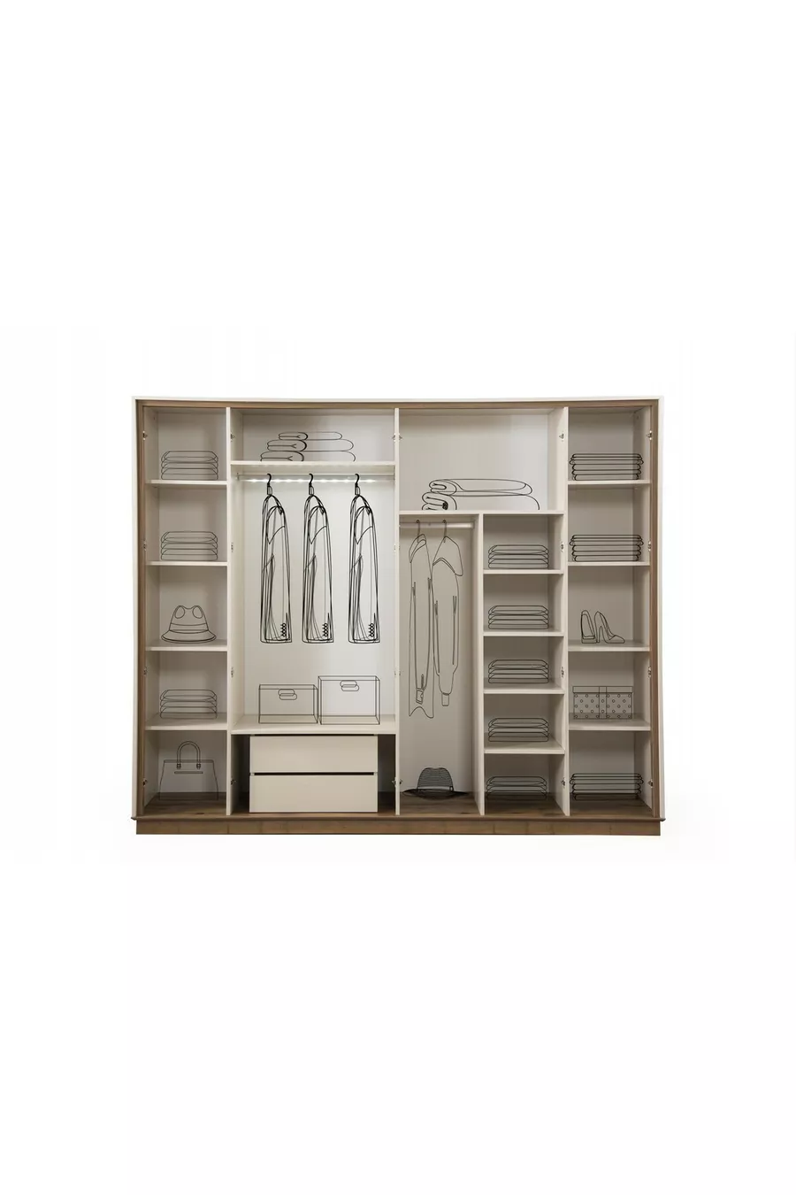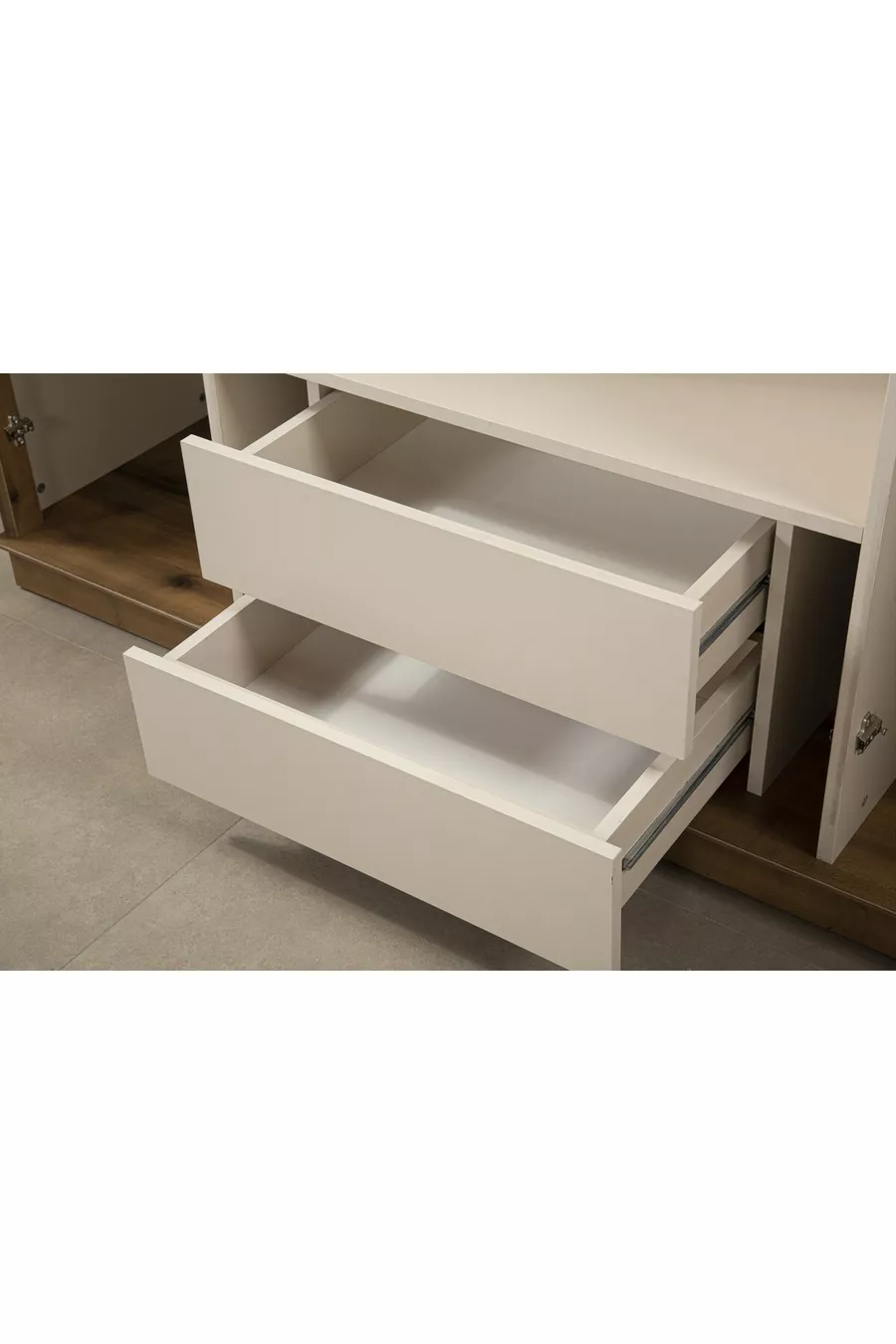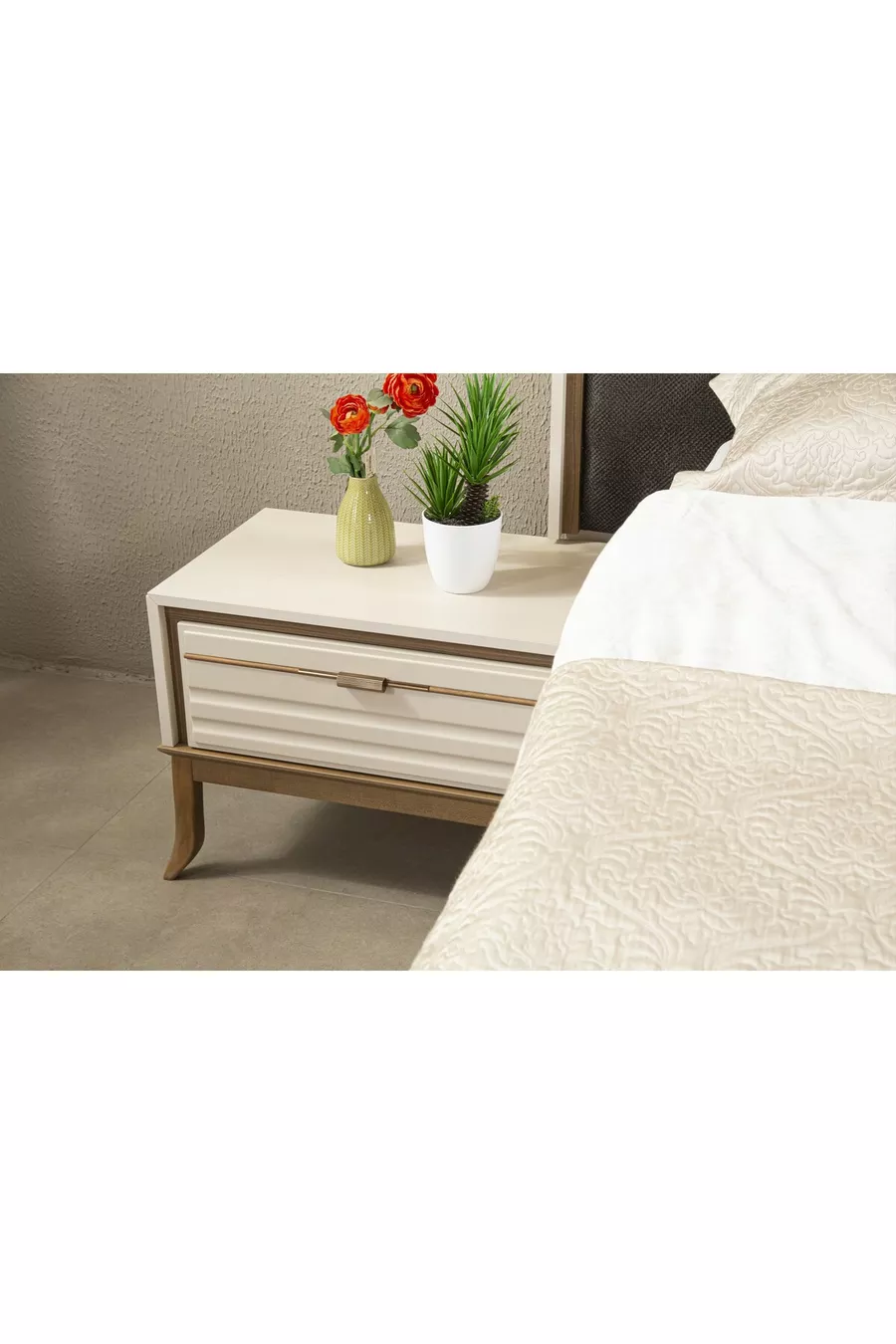 Setinhoud: Bed met opberglade + 2 nachtkastjes + ladekast + kast