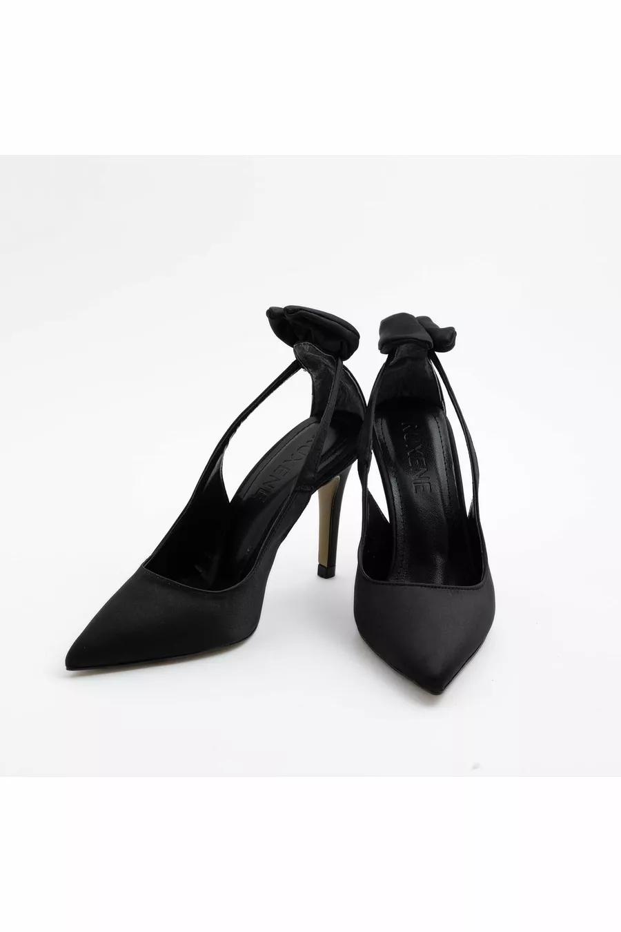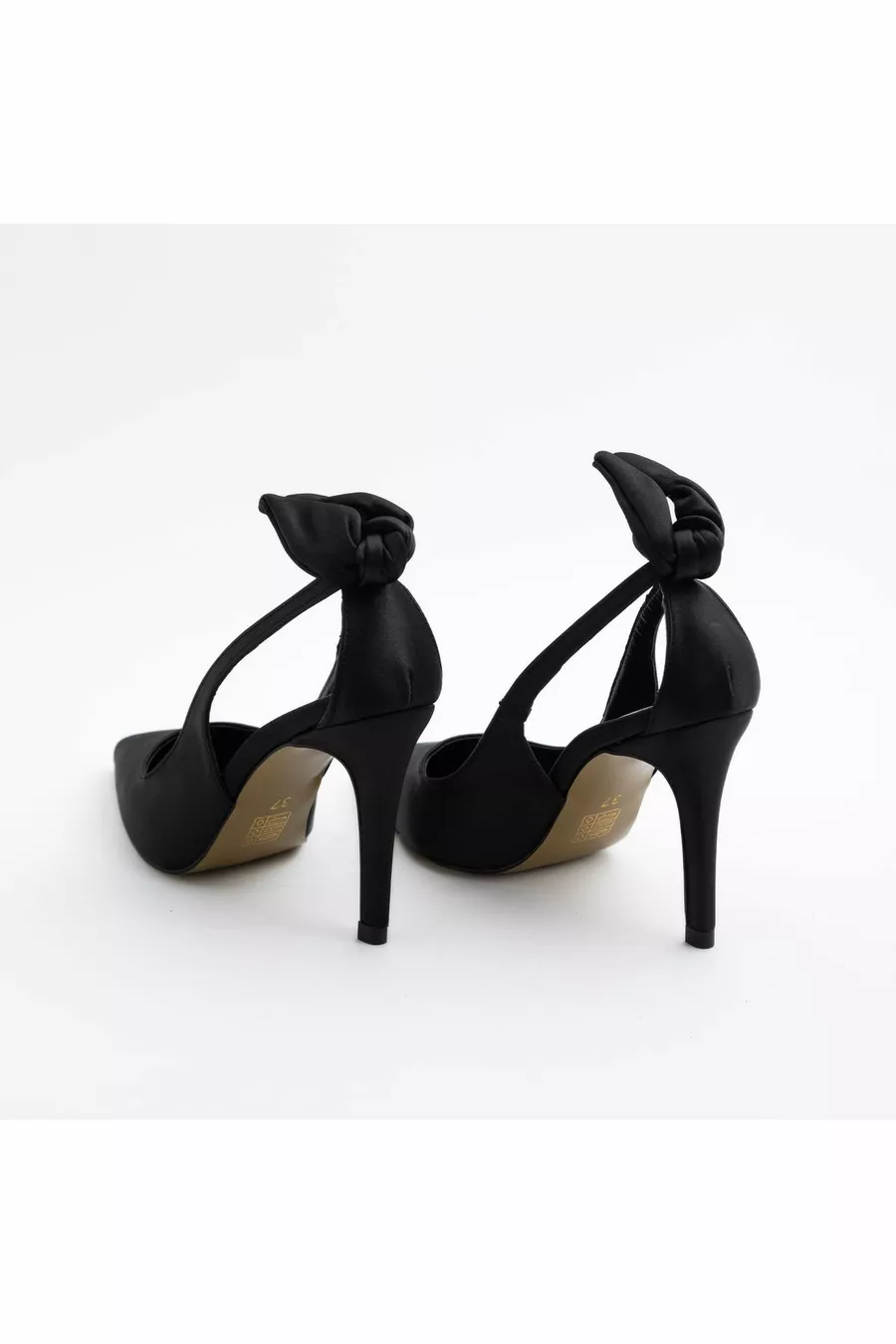 Else Gesloten Puntige Neus cm Dunne Hak Venster Detail Strik Glanzende Avondjurk Stiletto - Hakken