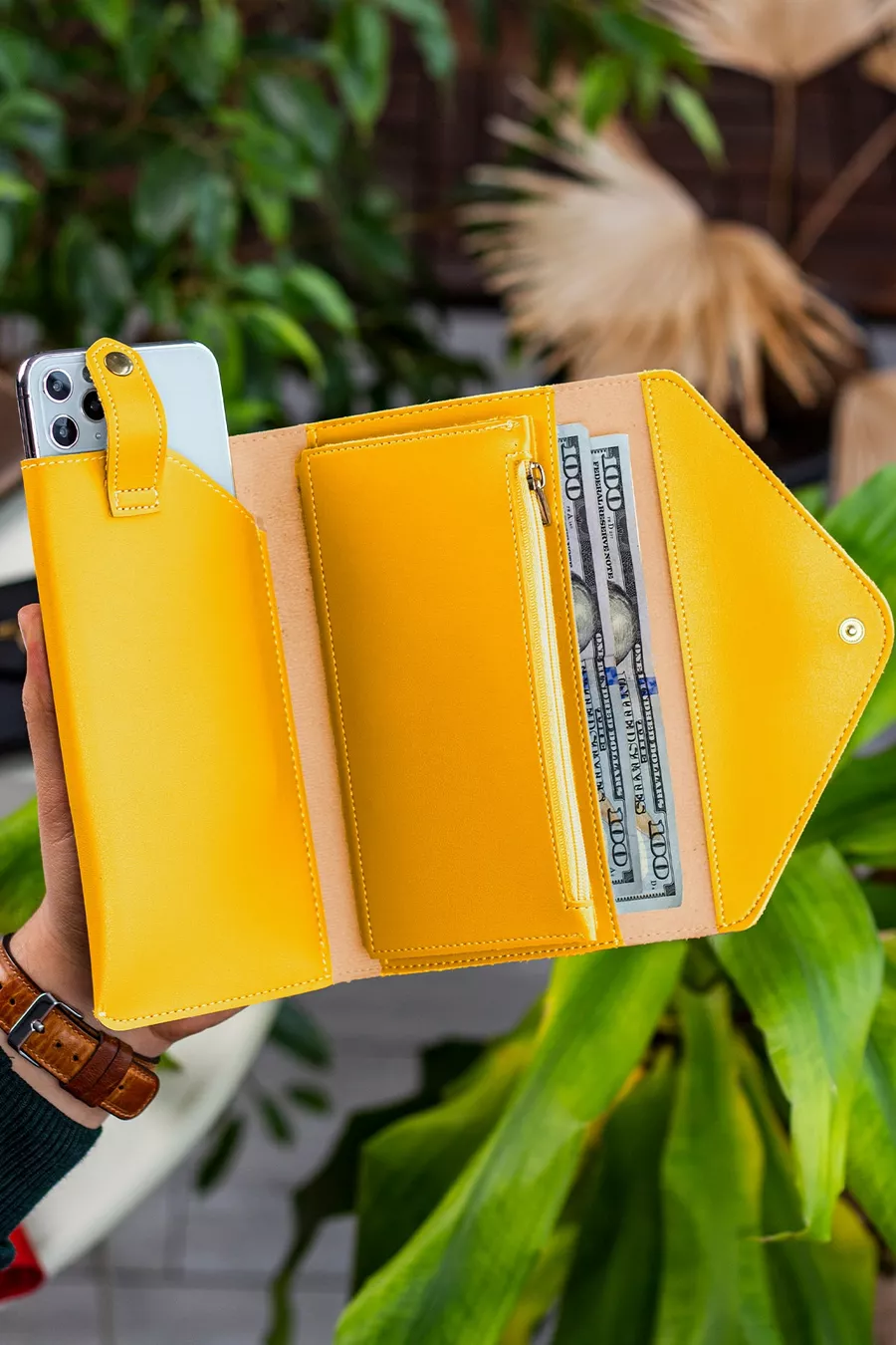 Envelope Telefoon en Muntenvak Zak Model Geel Damesportemonnee