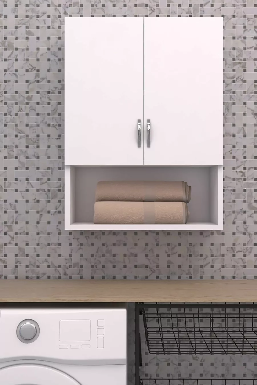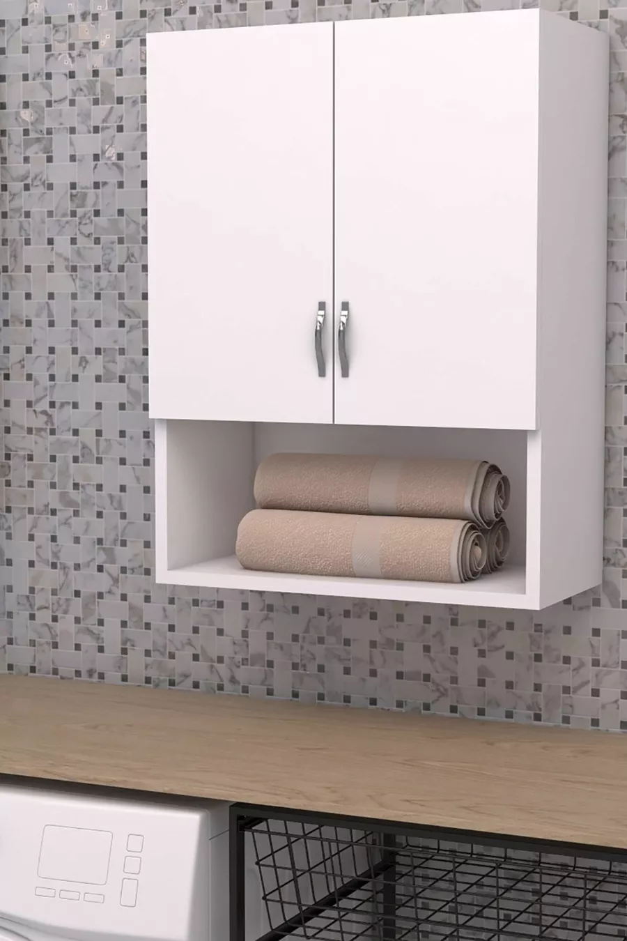 Aantal deuren: 2 Materiaal: Spaanplaat Kleur: Wit Functie: Met deur Kastafmetingen: 55 x 88 x 32 Model: Bovenmodule Stijl: Klassiek Herkomst: TR Kenmerk: Met deur