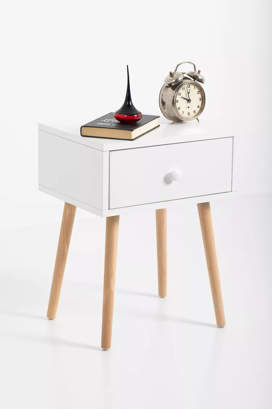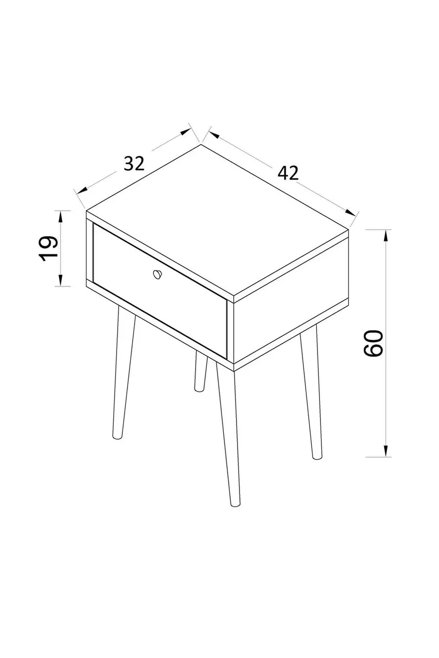 Materiaal: Suntalam Kleur: Wit Garantie: 2 jaar Aantal lades: 1 Hoogte: 60 cm Breedte: 45 cm Diepte: 35 cm Stijl: Scandinavisch Thema / Stijl: Scandinavisch Herkomst: TR Kenmerk: Met lade