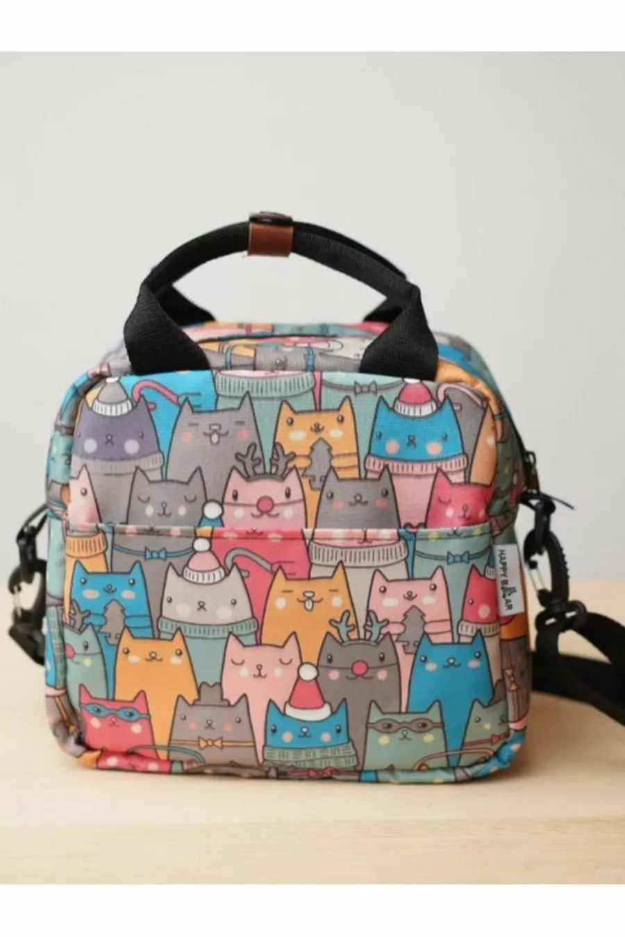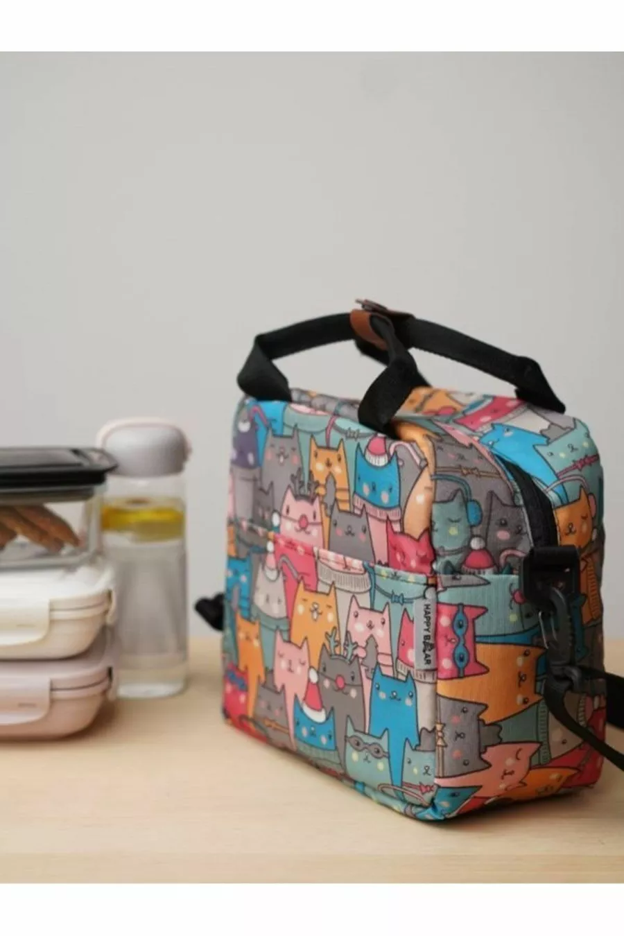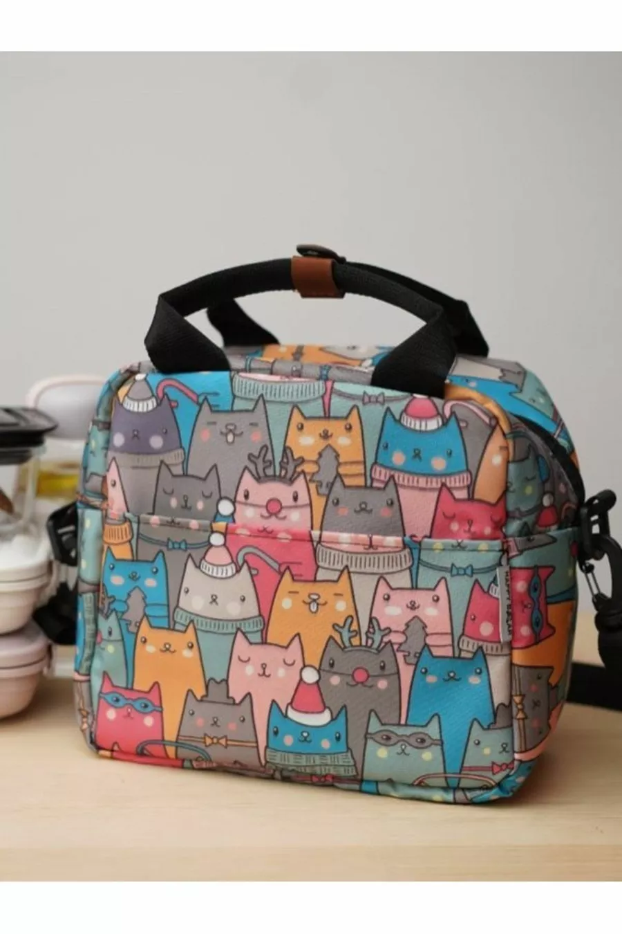 Geïsoleerde Waterdichte Thermische Tas Eten Draagtasje Schoudertas Met Kattenpatroon