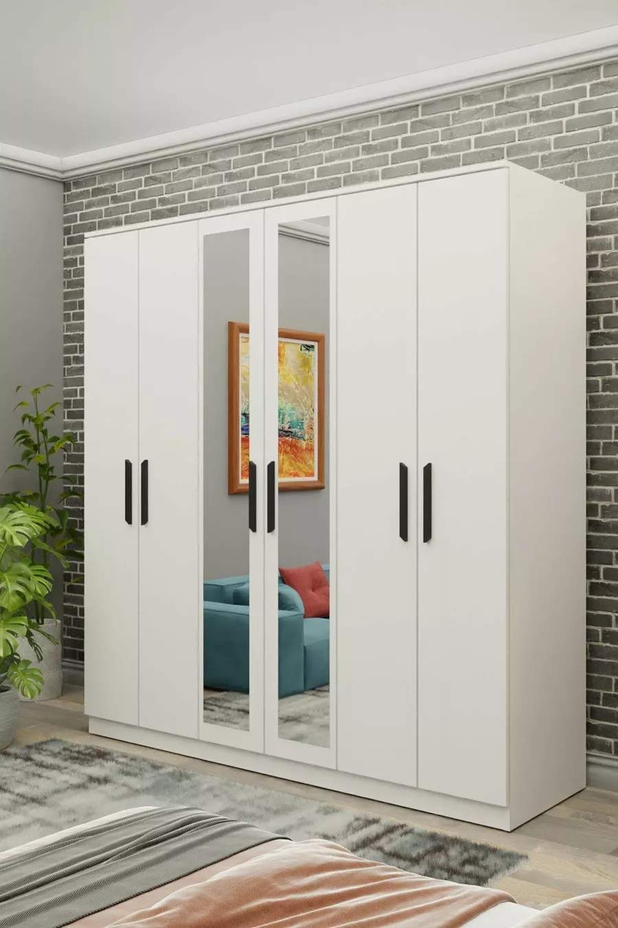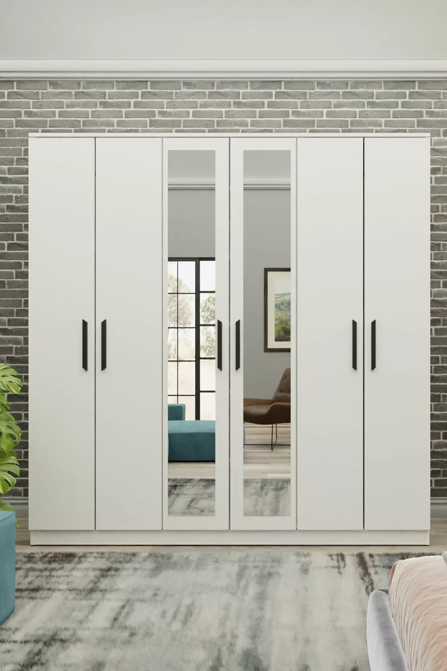 Gm Favoriete 6-Deurs Met Spiegel Witte Zwarte Kast Met Handgrepen