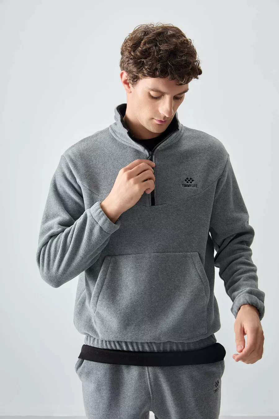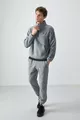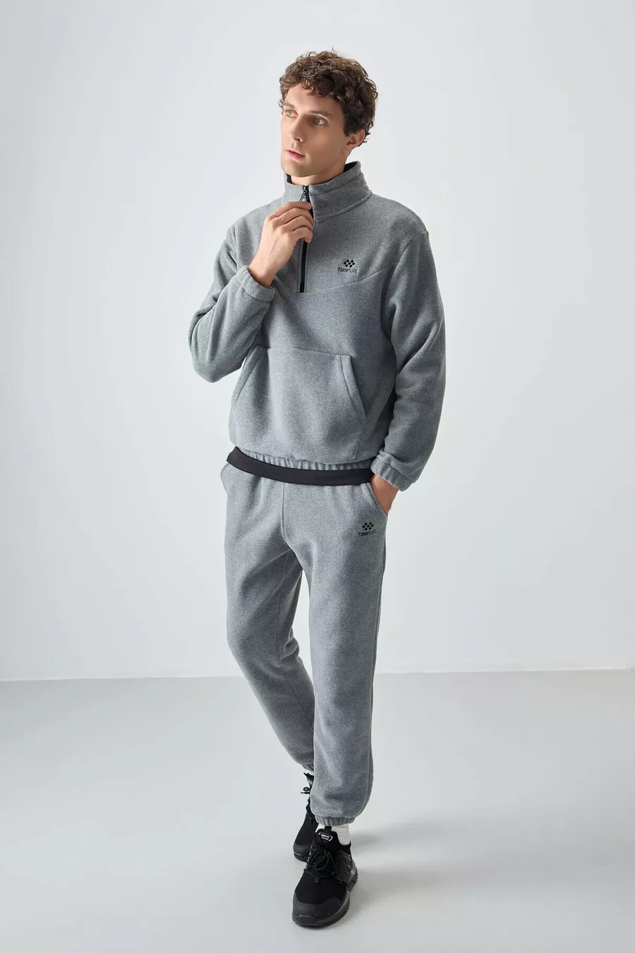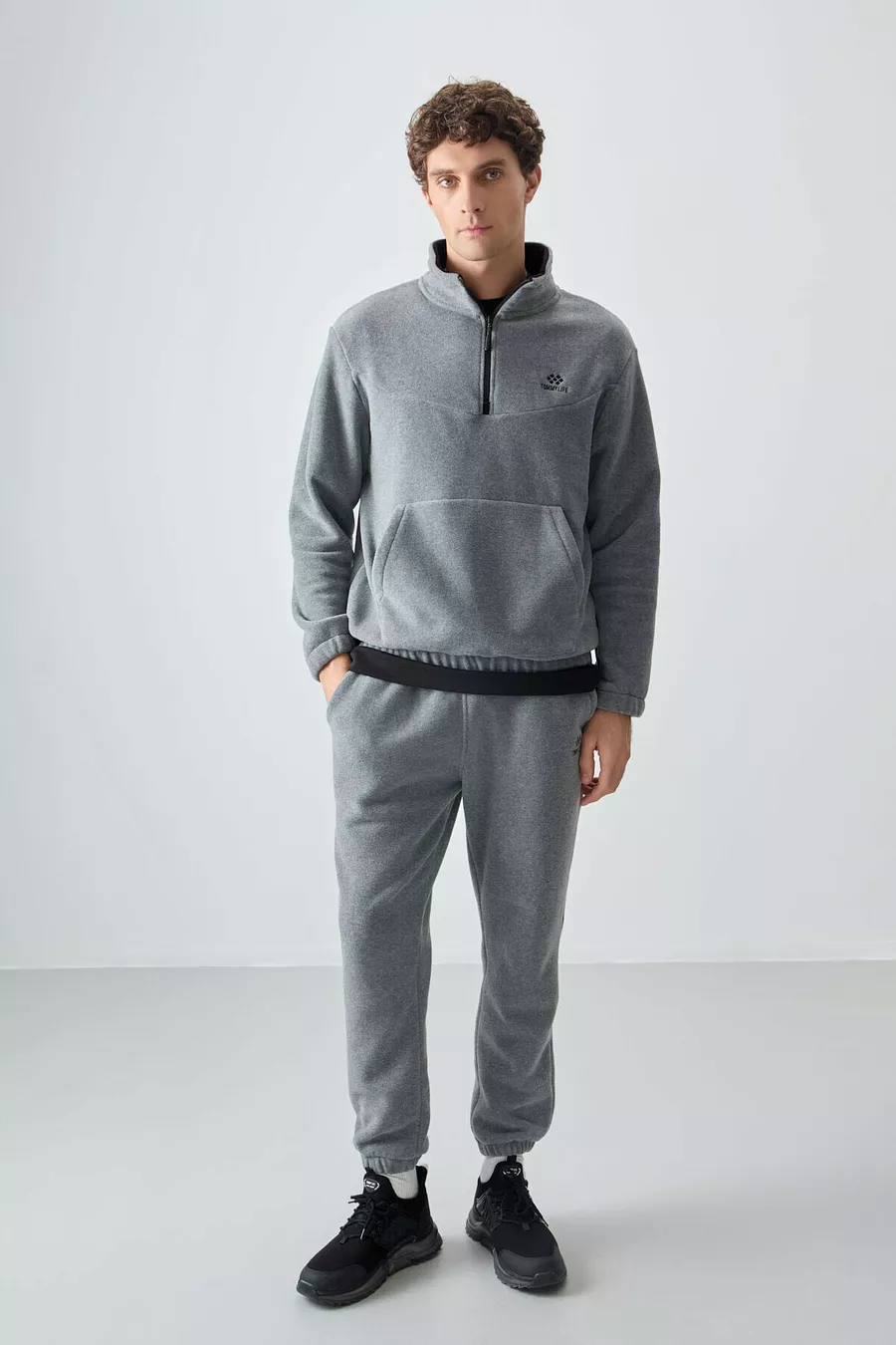 Grijs gemêleerd trainingspak voor heren met halve rits, rechte kraag en elastische boorden -