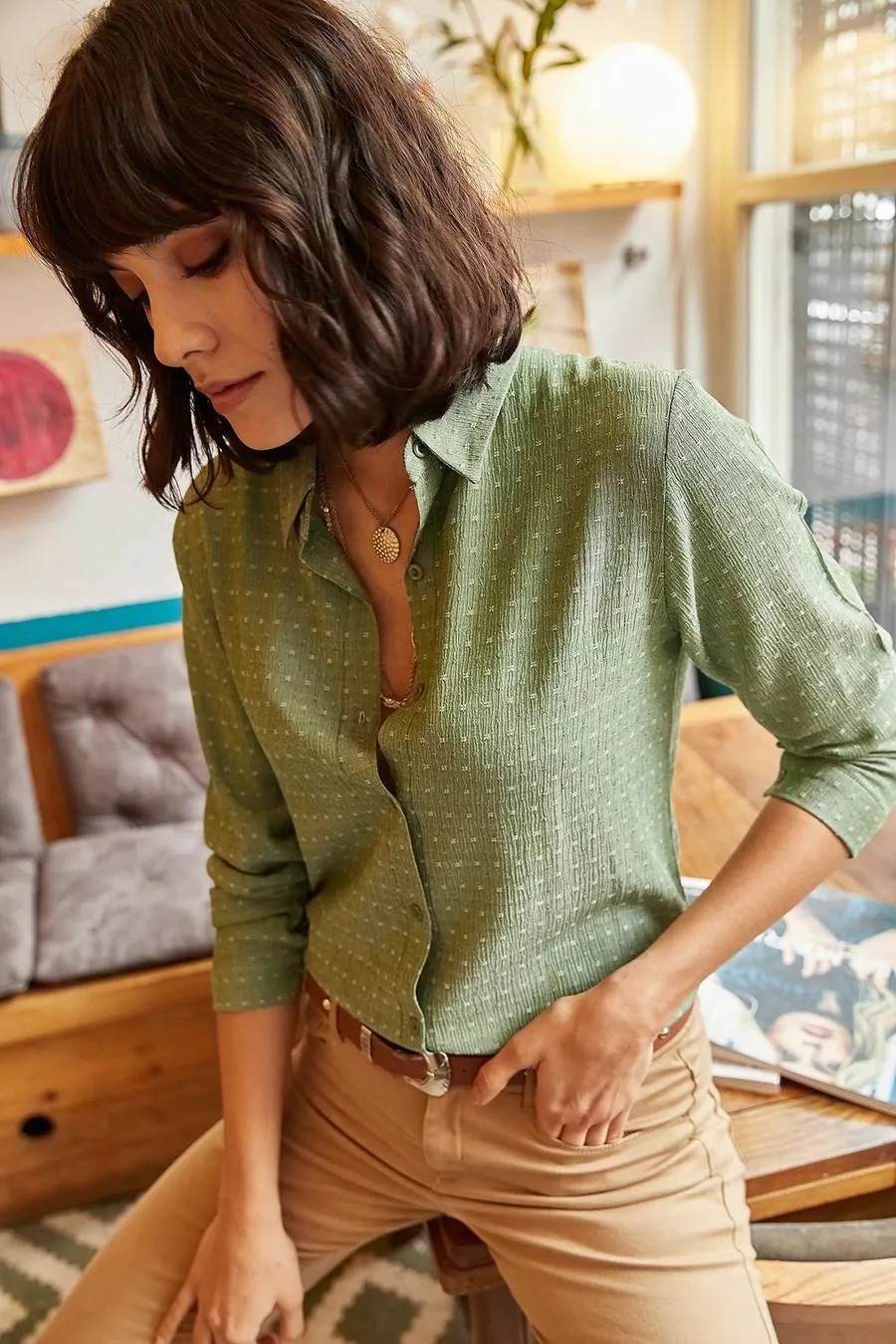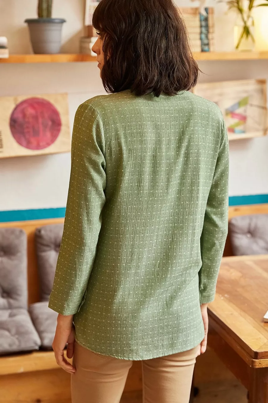 Groen getextureerd vloeiend shirt voor dames