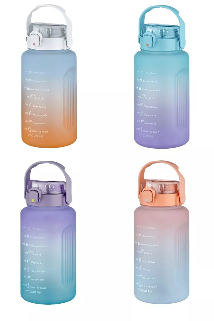 Groot formaat 2 liter met/zonder rietje Dubbelkleurige Softtouch Motivatiefles