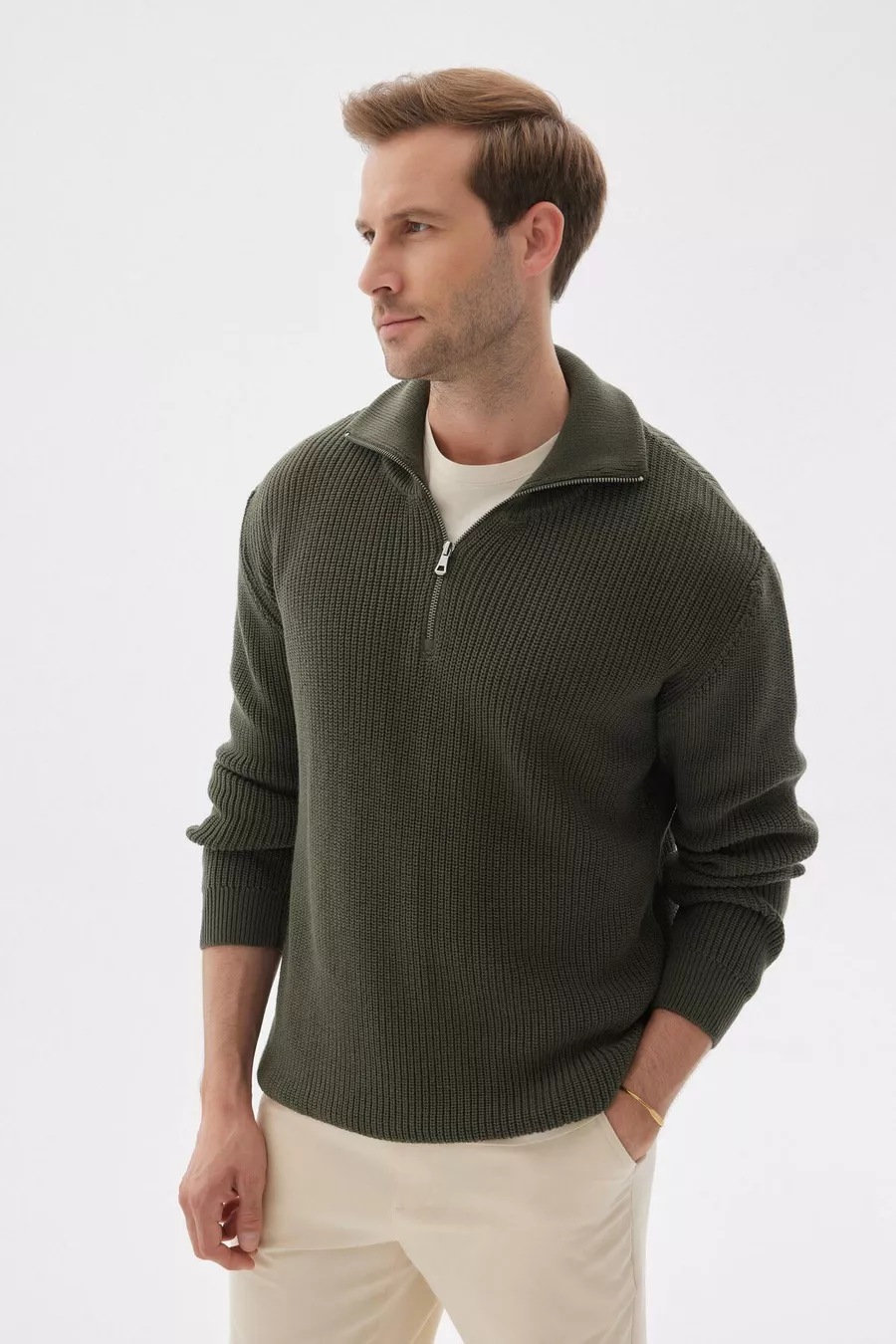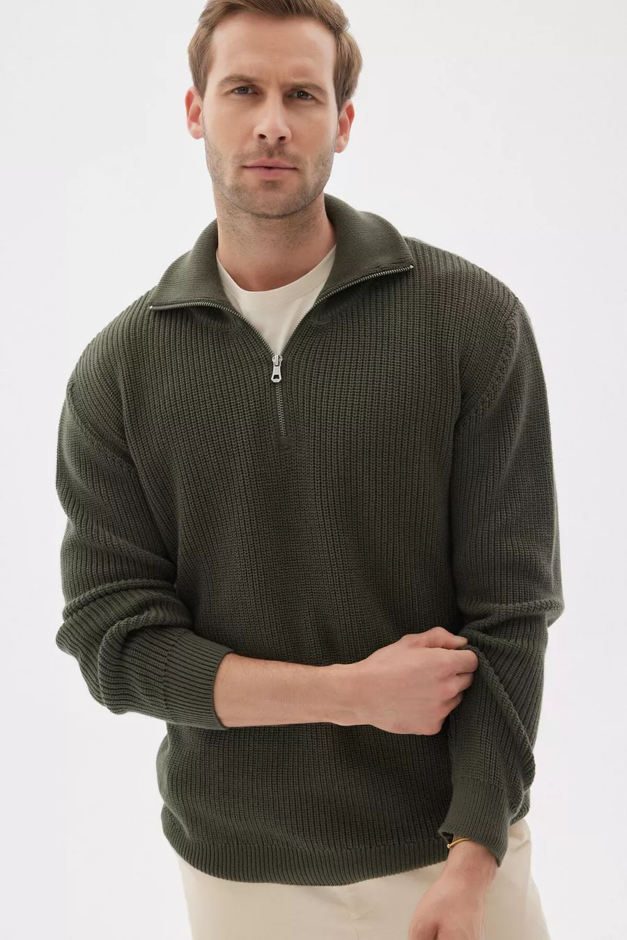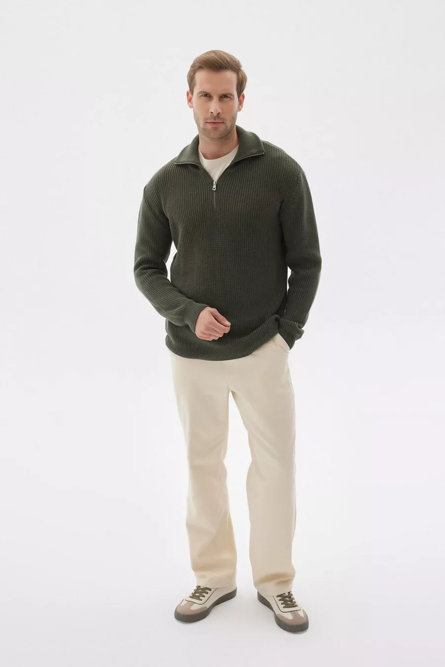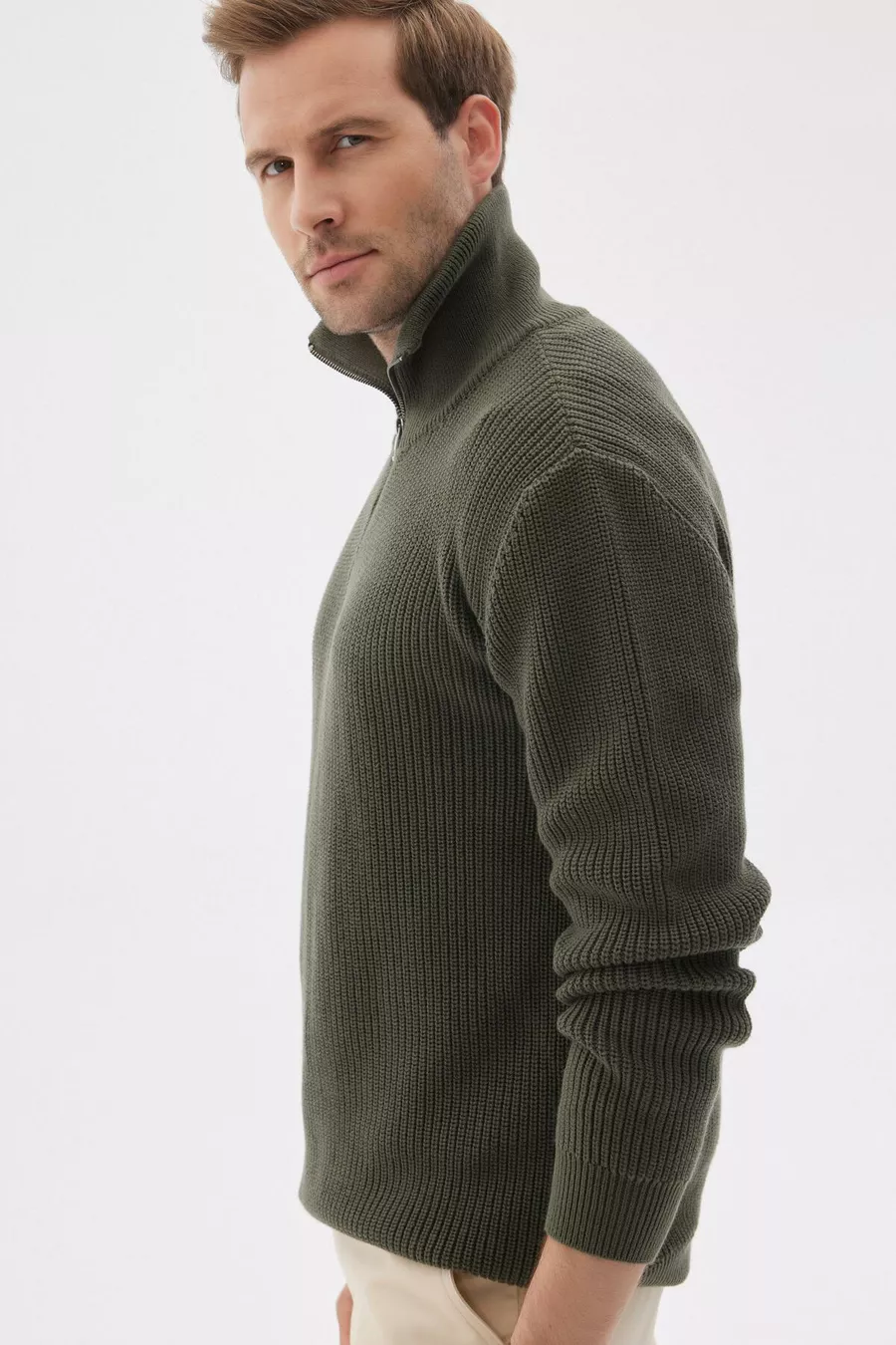 Patroon: Effen Pasvorm: Regular Kraagtype: Ritskraag Stofsoort: Tricot Kleur: Kaki Materiaal: Acrylaat - Katoen Mouwtype: Lange mouw Zak: Zonder zakken Productdetails: Rits Producttype: Effen Mouwlengte: Lang Silhouet: Regular Stijl: Trend Lengte: Standaard Extra kenmerken: Geen extra kenmerken Print/Borduur Techniek: Zonder print Persoonlijkheid: Fashion Forward Weeftechniek: Gebreid Duurzaamheidsdetail: Nee Riem/Gordel: Zonder riem Materiaal samenstelling: 50% Katoen, 50% Acrylaat Wasinstructies: Raadpleeg het productlabel voor gedetailleerde verzorgingsinstructies. Herkomst: TR Verpakking: Geen doos